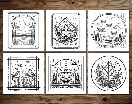 55 Autumn Simple Art Bold and Easy Coloring Pages - Instant Download - Printable PDF