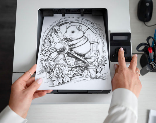 50 Hamster's Winter Grayscale Coloring Pages - Instant Download - Printable PDF Dark/Light