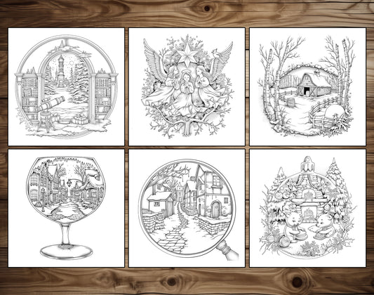 50 Christmas Vibes Grayscale Coloring Pages - Instant Download - Printable PDF Dark/Light