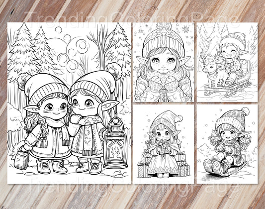 50 Elf's Journey Grayscale Coloring Pages - Instant Download - Printable PDF Dark/Light