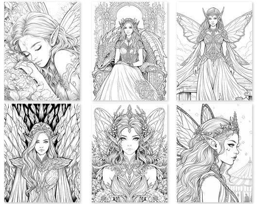 30 Fairy Queen Grayscale Coloring Pages - Instant Download - Printable PDF Dark/Light