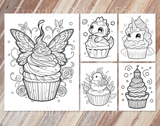 30 Adorable Cupcake Coloring Pages - Instant Download - Printable PDF