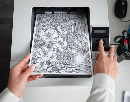 70 Open Magic Book - World of Flowers Grayscale Coloring Pages - Instant Download - Printable PDF Dark/Light