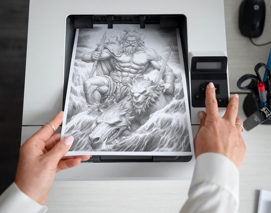 25 King Father Of Ocean Grayscale Coloring Pages - Instant Download - Printable PDF Dark/Light