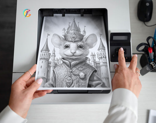 30 The Little Mouse Prince Grayscale Coloring Pages - Instant Download - Printable PDF Dark/Light