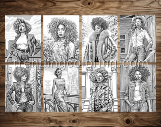 50 Classy Girl Grayscale Coloring Pages - Instant Download - Printable PDF Dark/Light