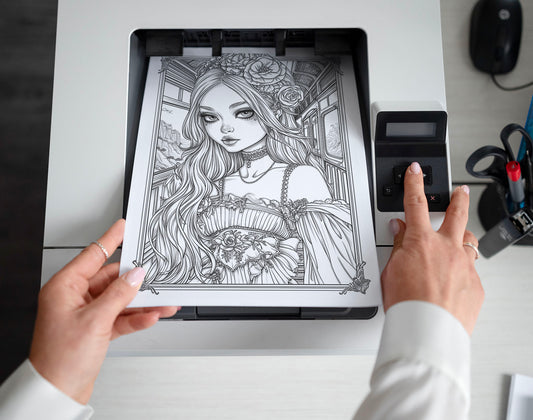 25 Gothic Glamour Girl Grayscale Coloring Pages - Instant Download - Printable PDF Dark/Light