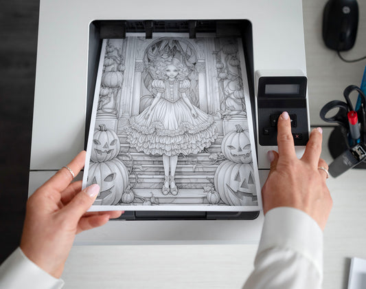 50 Autumn Princesses Grayscale Coloring Pages - Instant Download - Printable PDF Dark/Light