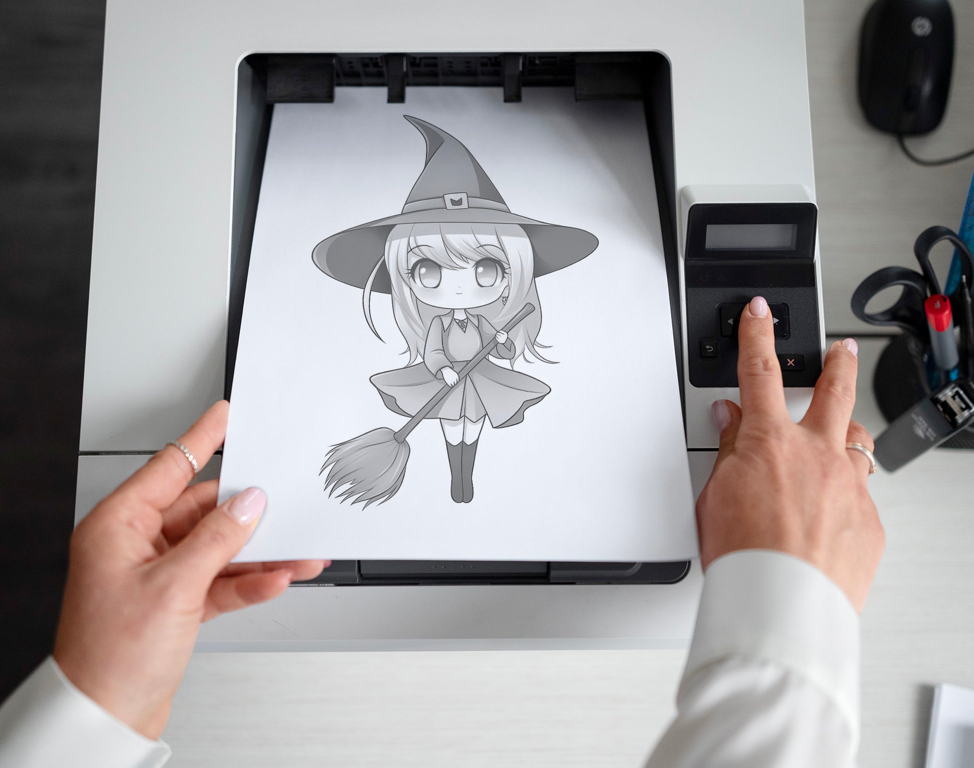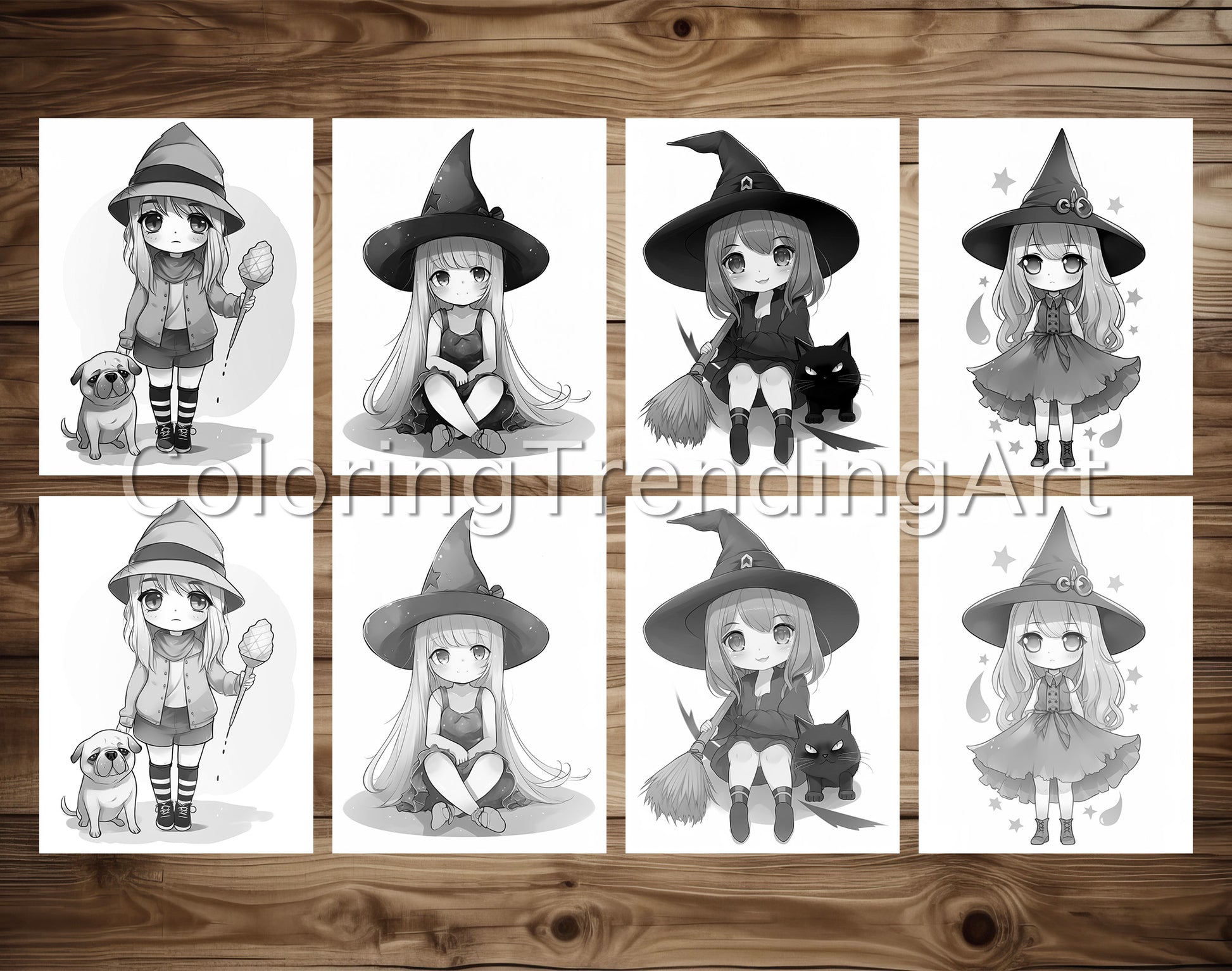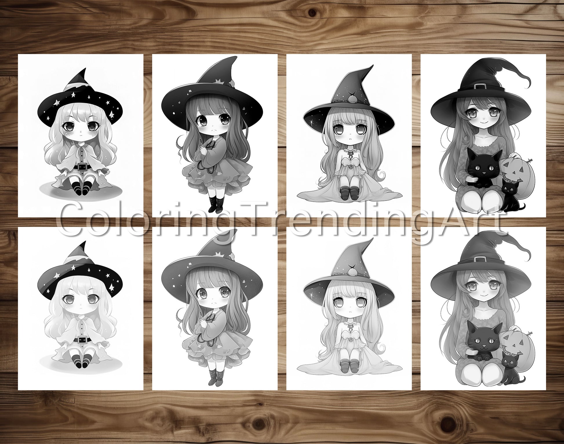 25 Chibi Süße Hexe Graustufen Malvorlagen - Sofortiger Download - Druckbare PDF Dunkel/Hell