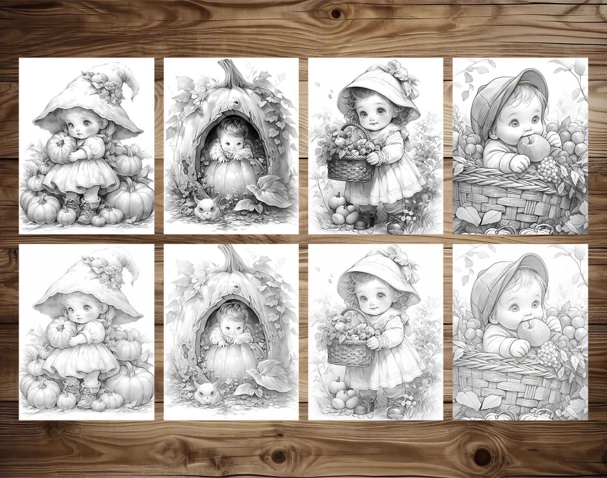 25 Herbst Baby Graustufen Malvorlagen - Sofortiger Download - Druckbare PDF Dunkel/Hell