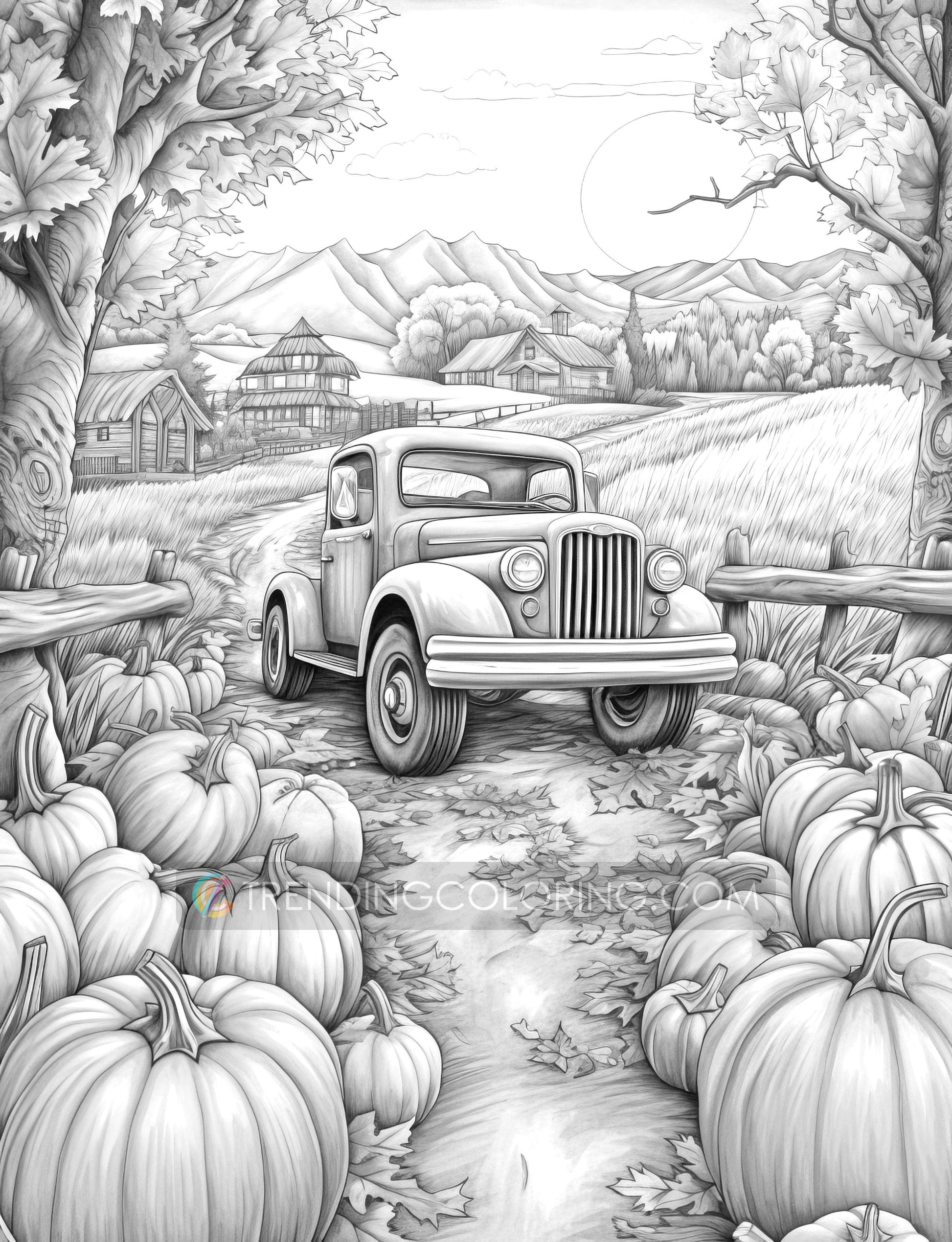 25 Herbststimmung Graustufen Ausmalseiten - Sofortiger Download - Druckbares PDF Dunkel/Hell