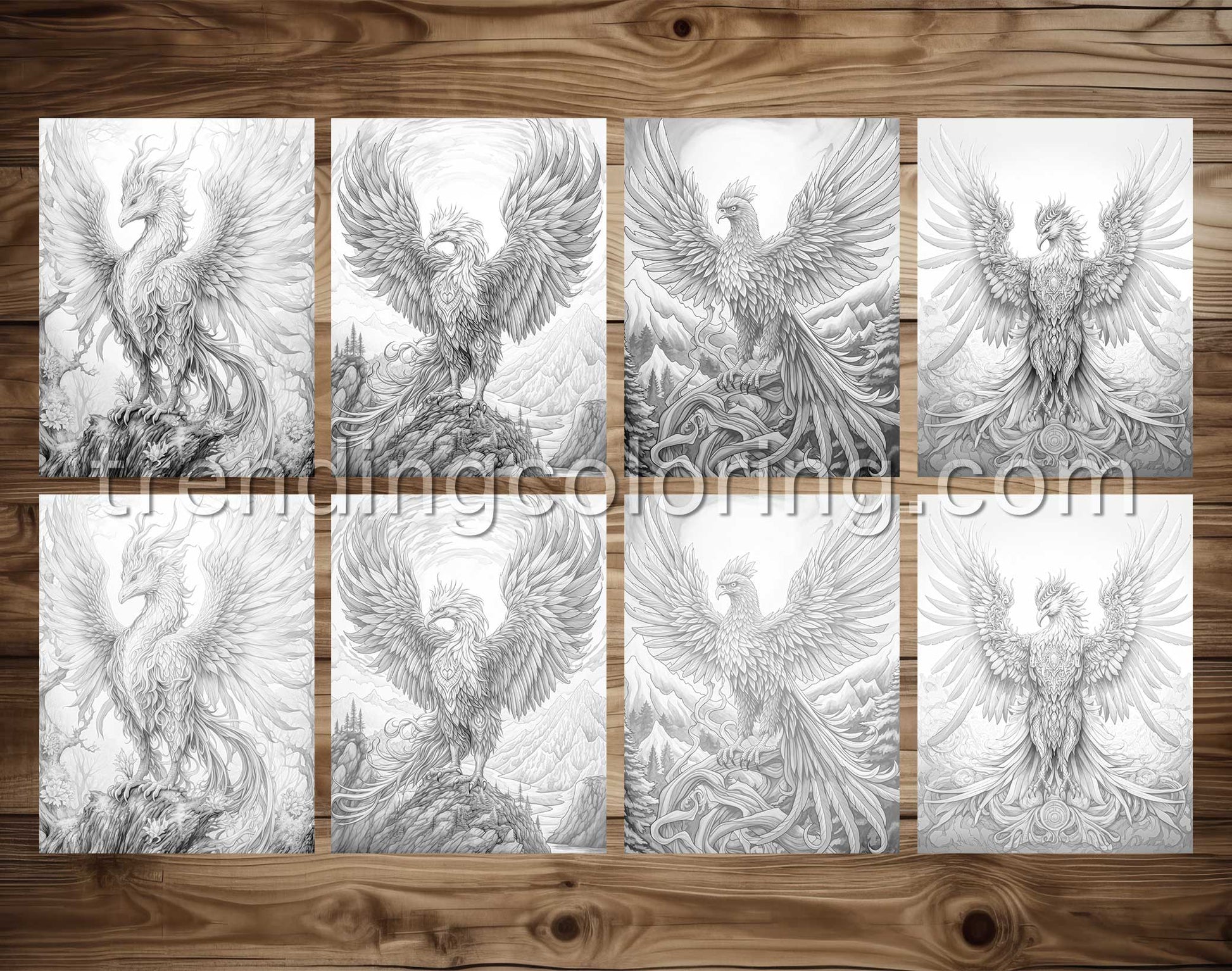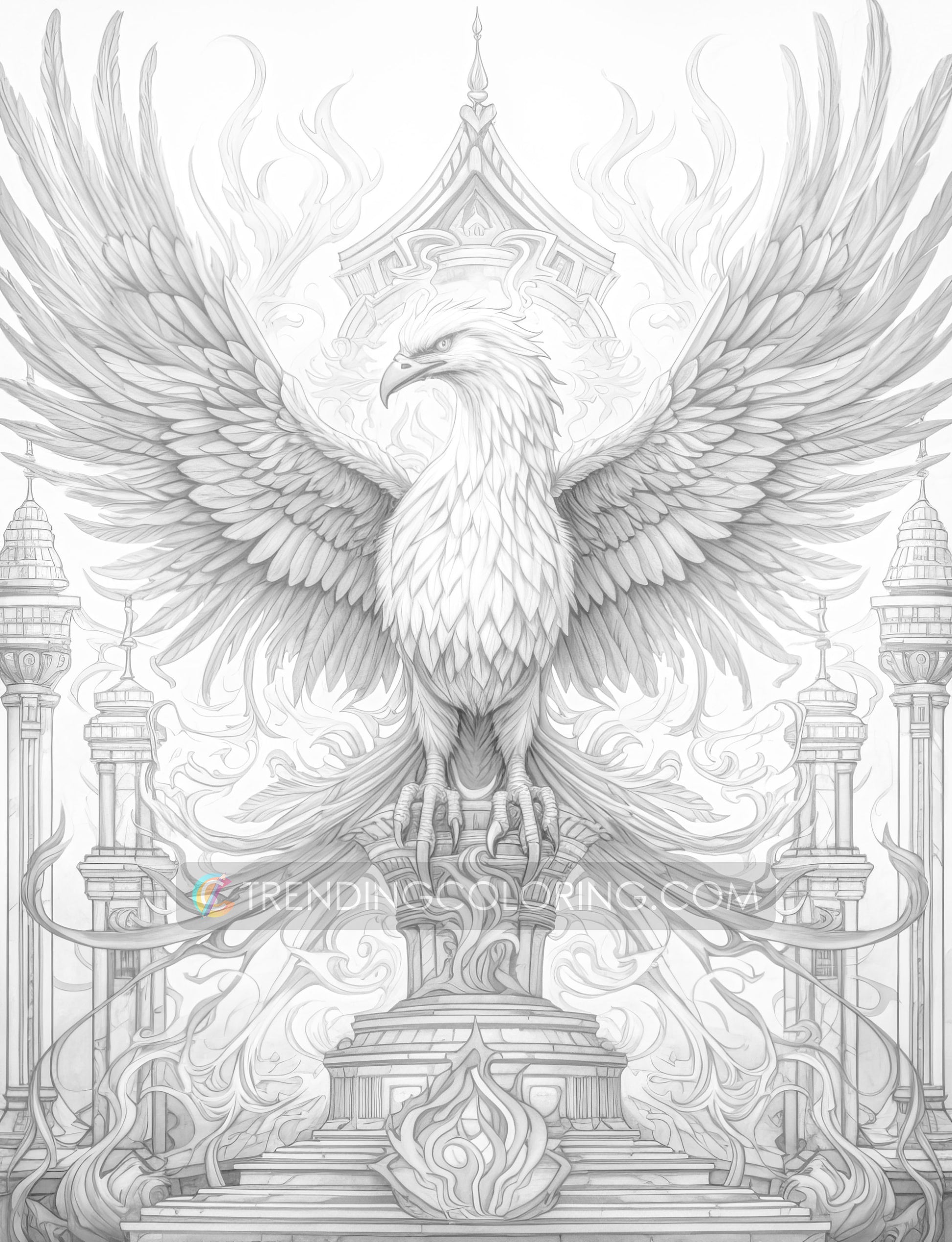- 25 Hochwertige Mythische Phönix Ausmalseiten in Graustufen