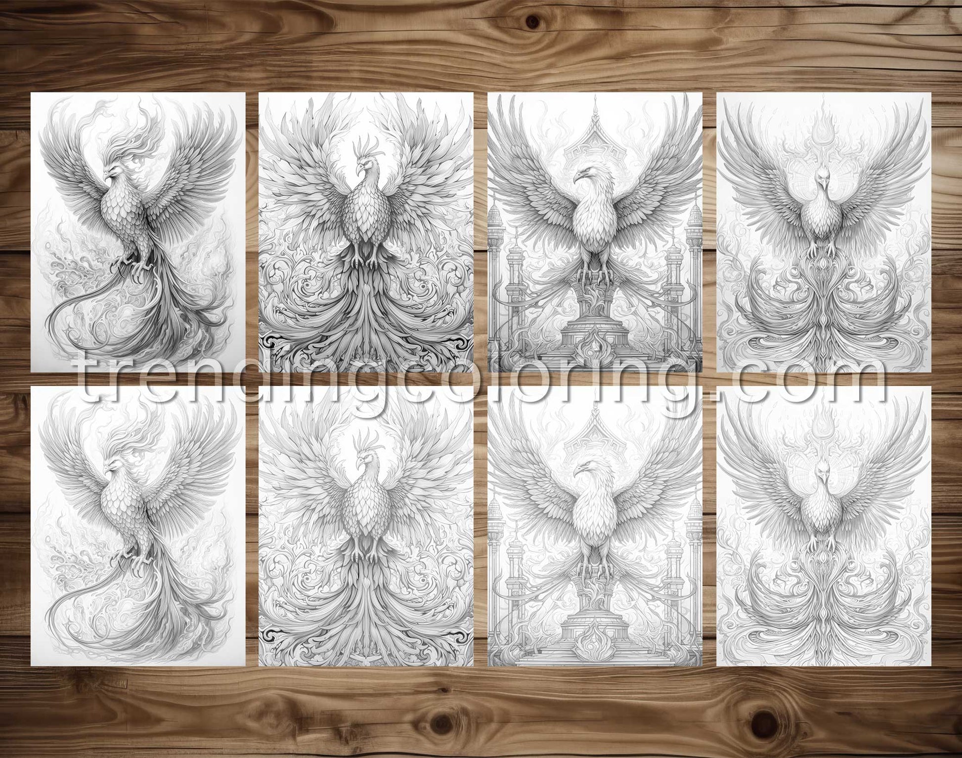 25 mythische Phönix Graustufen Ausmalbilder - Sofortiger Download - Druckbare PDF Dunkel/Hell