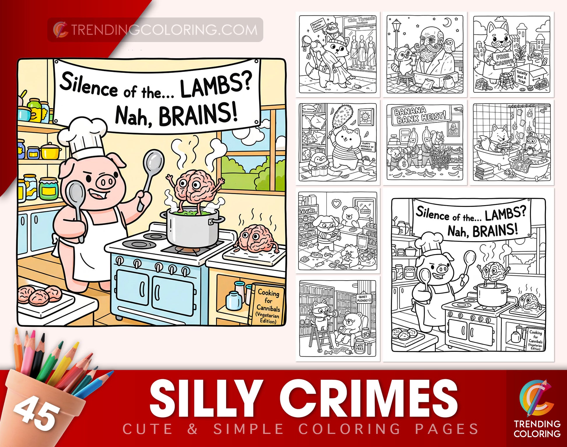 45 Silly Crimes Cute and Simple Coloring Pages - PDF Download
