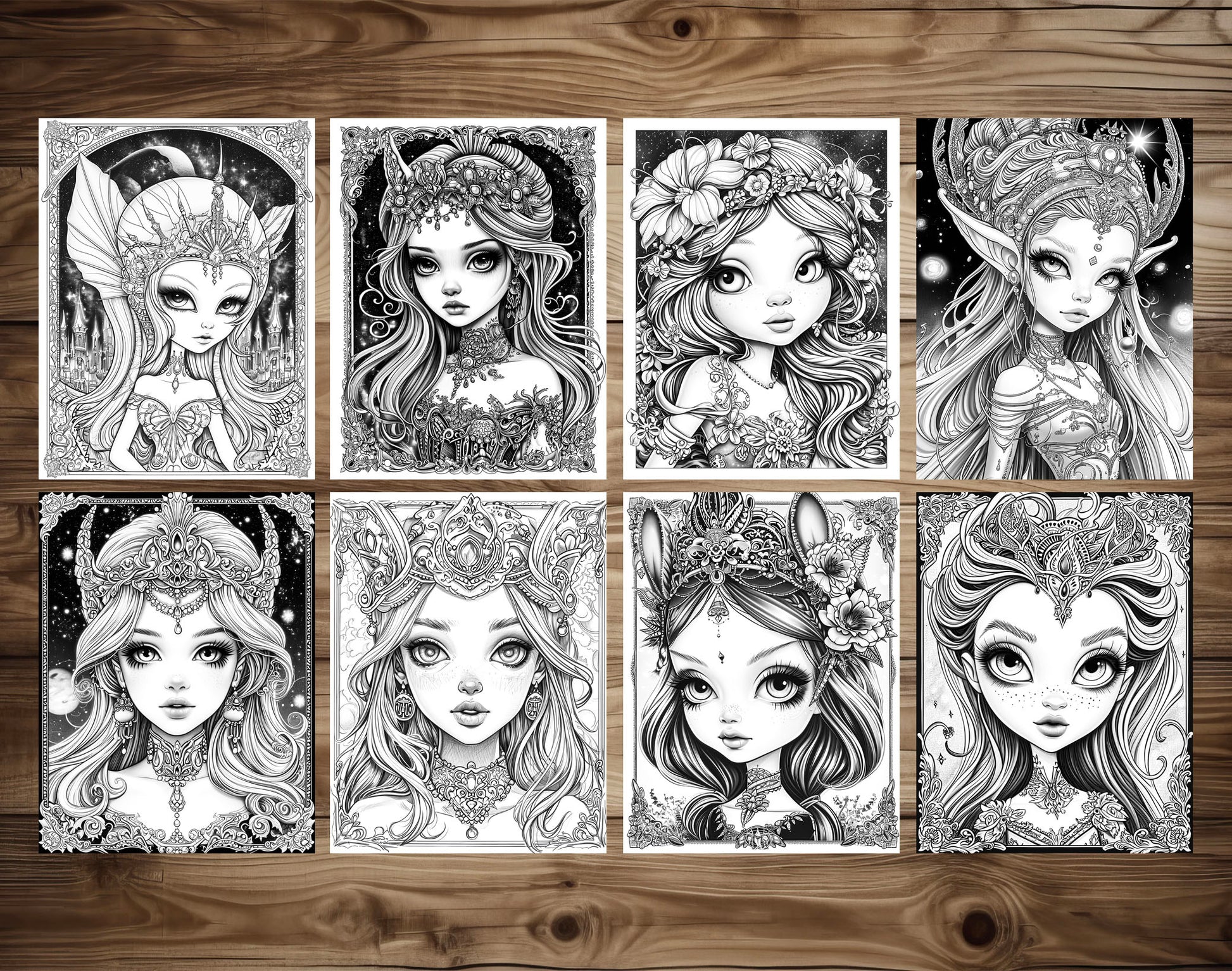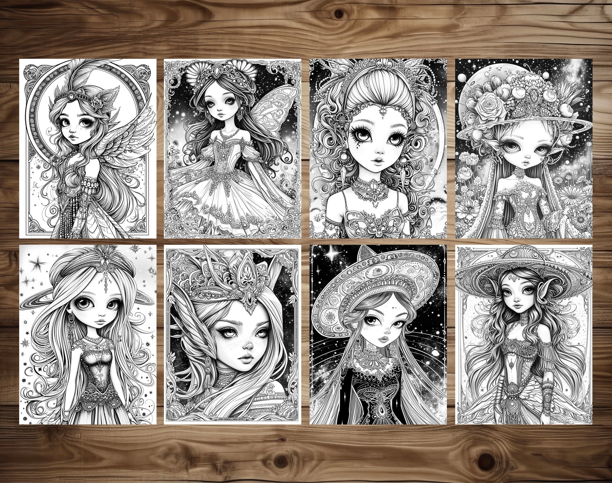 - Celestial Elegance: Each coloring page depicts a Space Queen in her cosmic realm, combining elements of fantasy and science fiction.