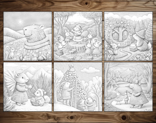 50 Capybara’s Merry Moments Grayscale Coloring Pages