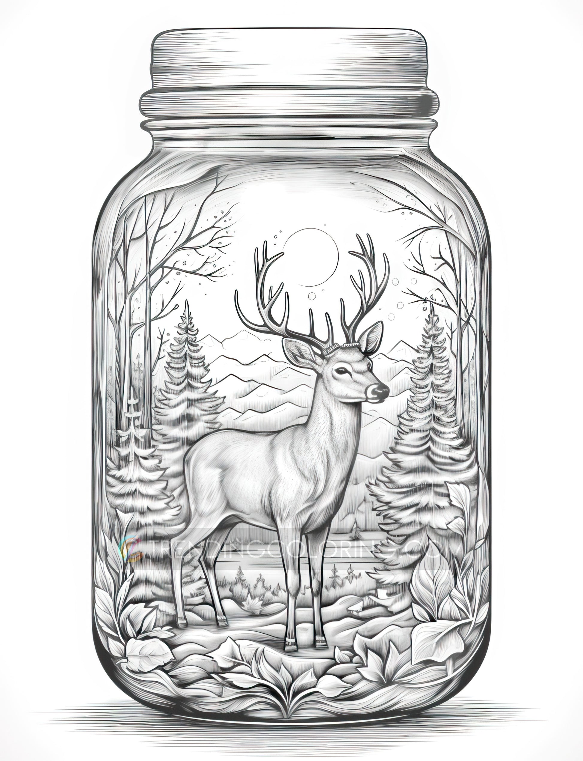 50 Autumn Country In Jar Grayscale Coloring Pages - Instant Download - Printable PDF Dark/Light
