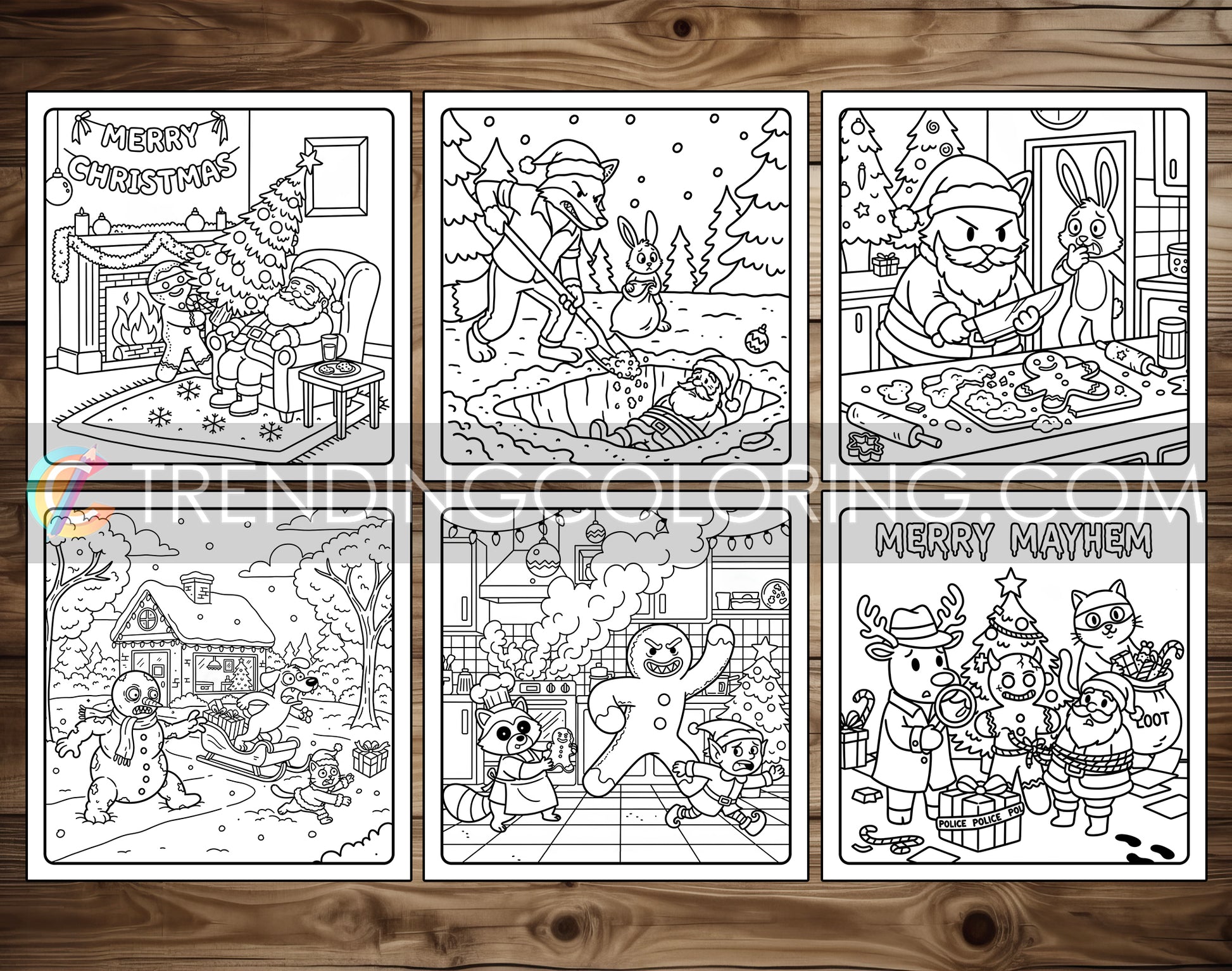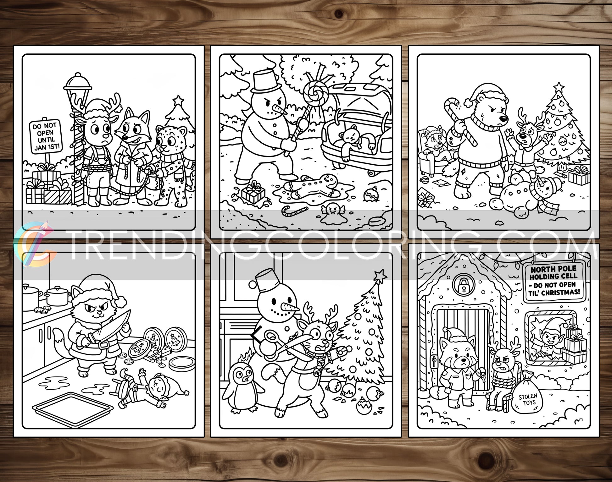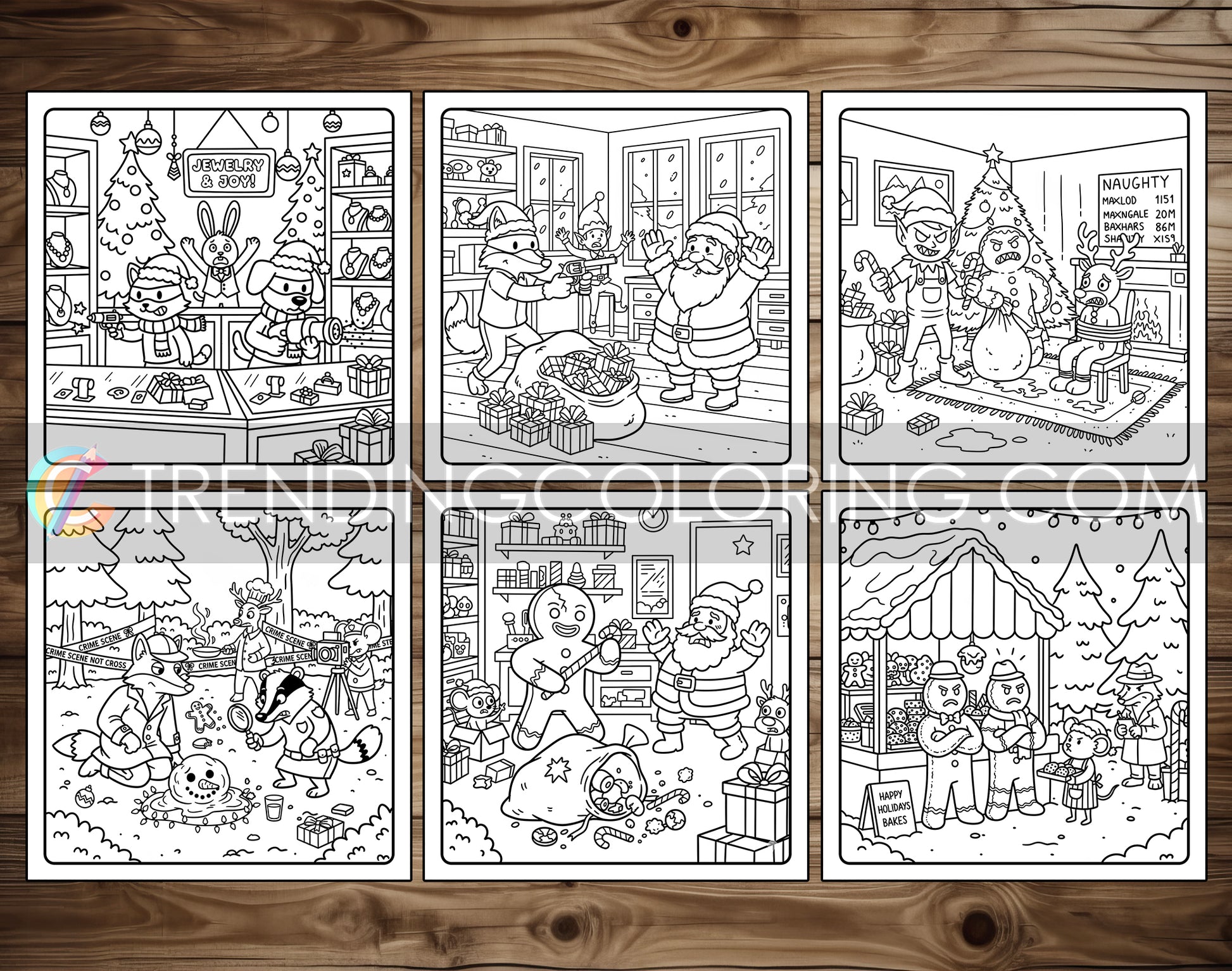 20 Cozy Christmas Crime Scenes Cute and Simple Coloring Pages - PDF Download