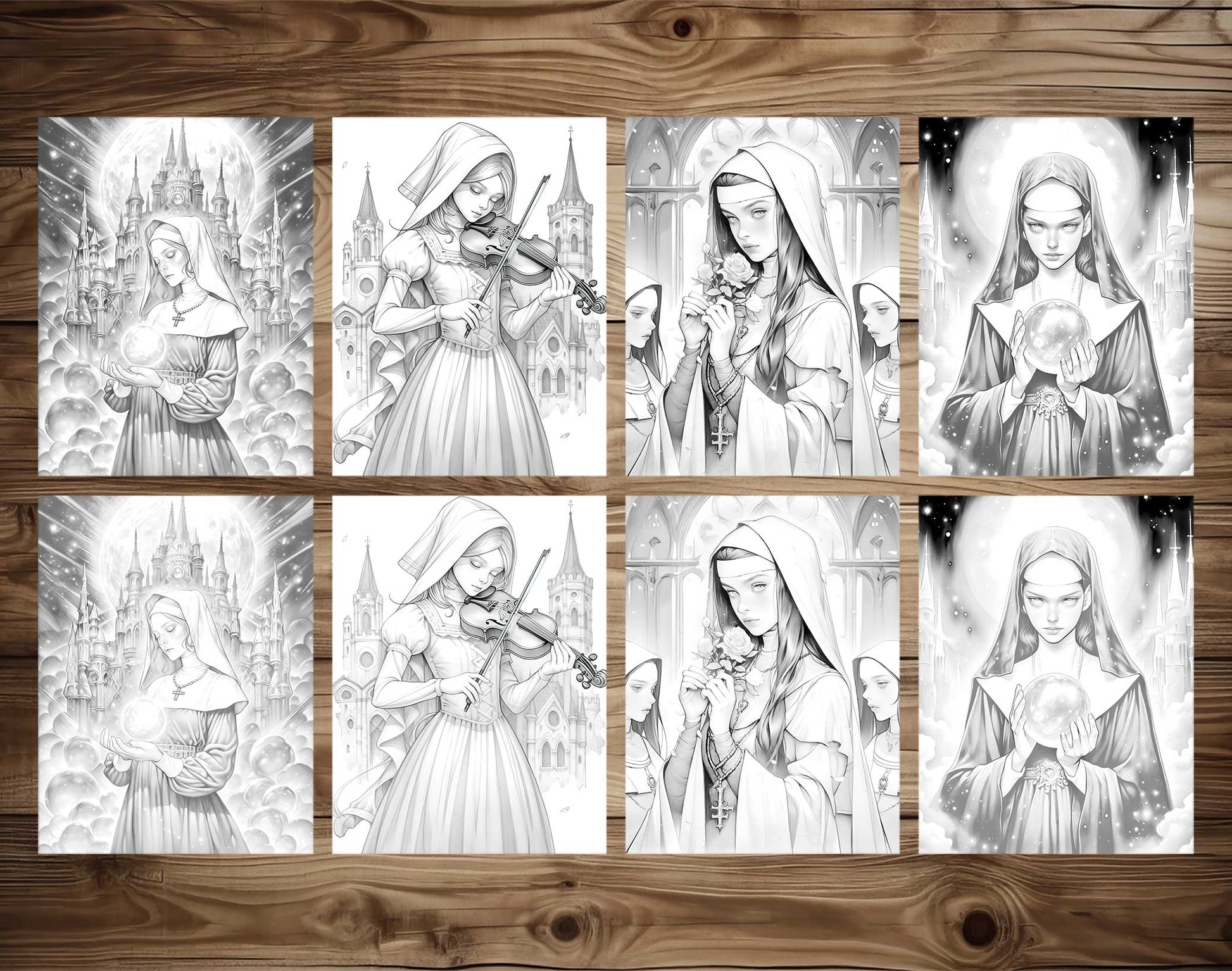 - Anyone intrigued by the blend of sacred and spooky themes, eager to bring these unique Gothic nuns to life through color.