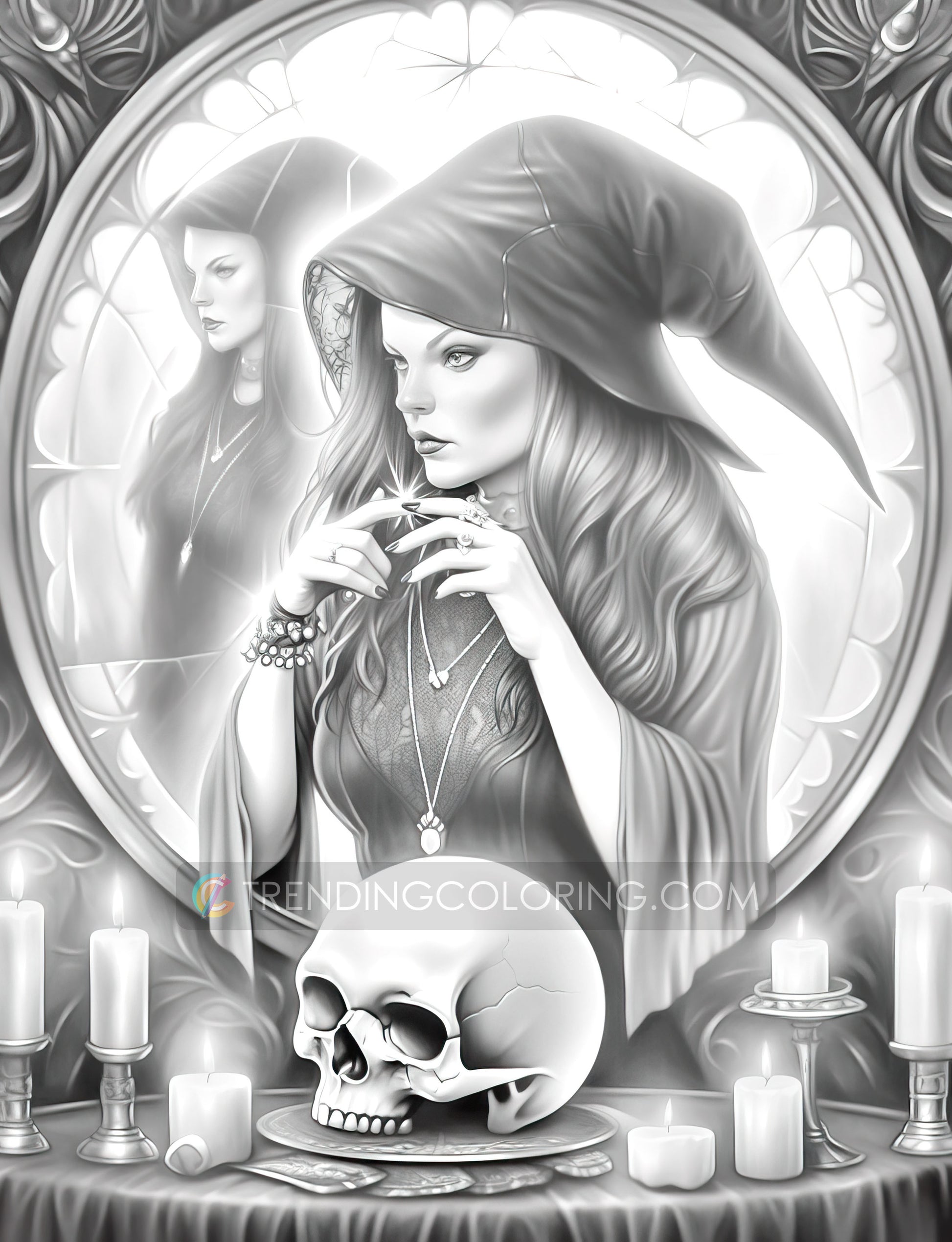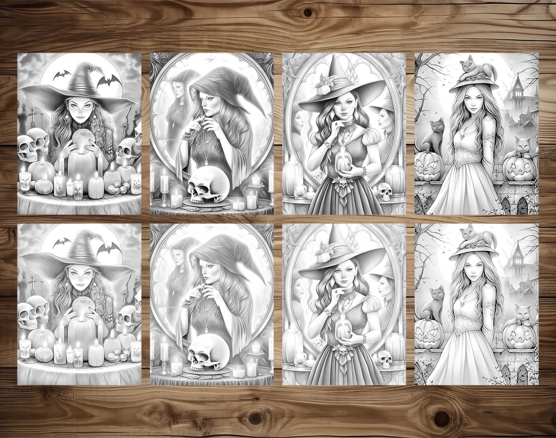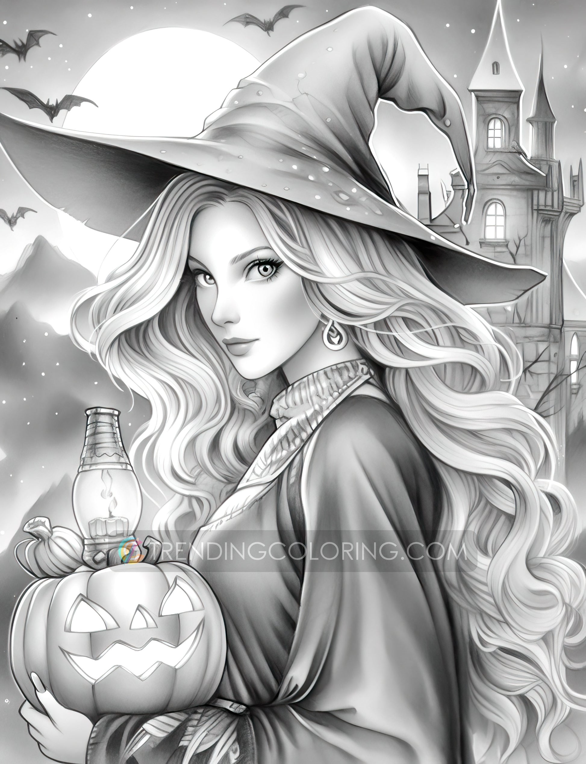 Halloween is a time of mystery and enchantment, and what better way to celebrate than by spending time coloring these bewitching ladies? The dark/light grayscale options provide the freedom to explore shading and tones, letting you decide whether your witches are ominously dark or ethereally light.