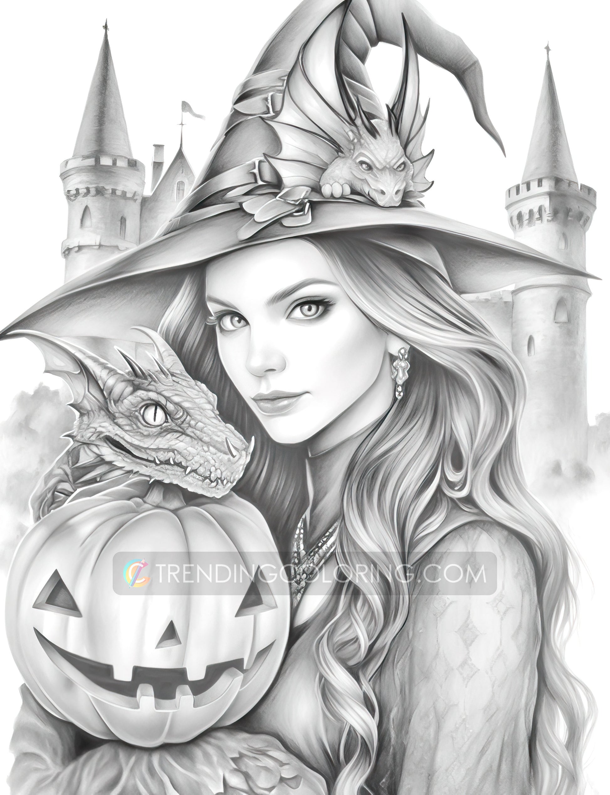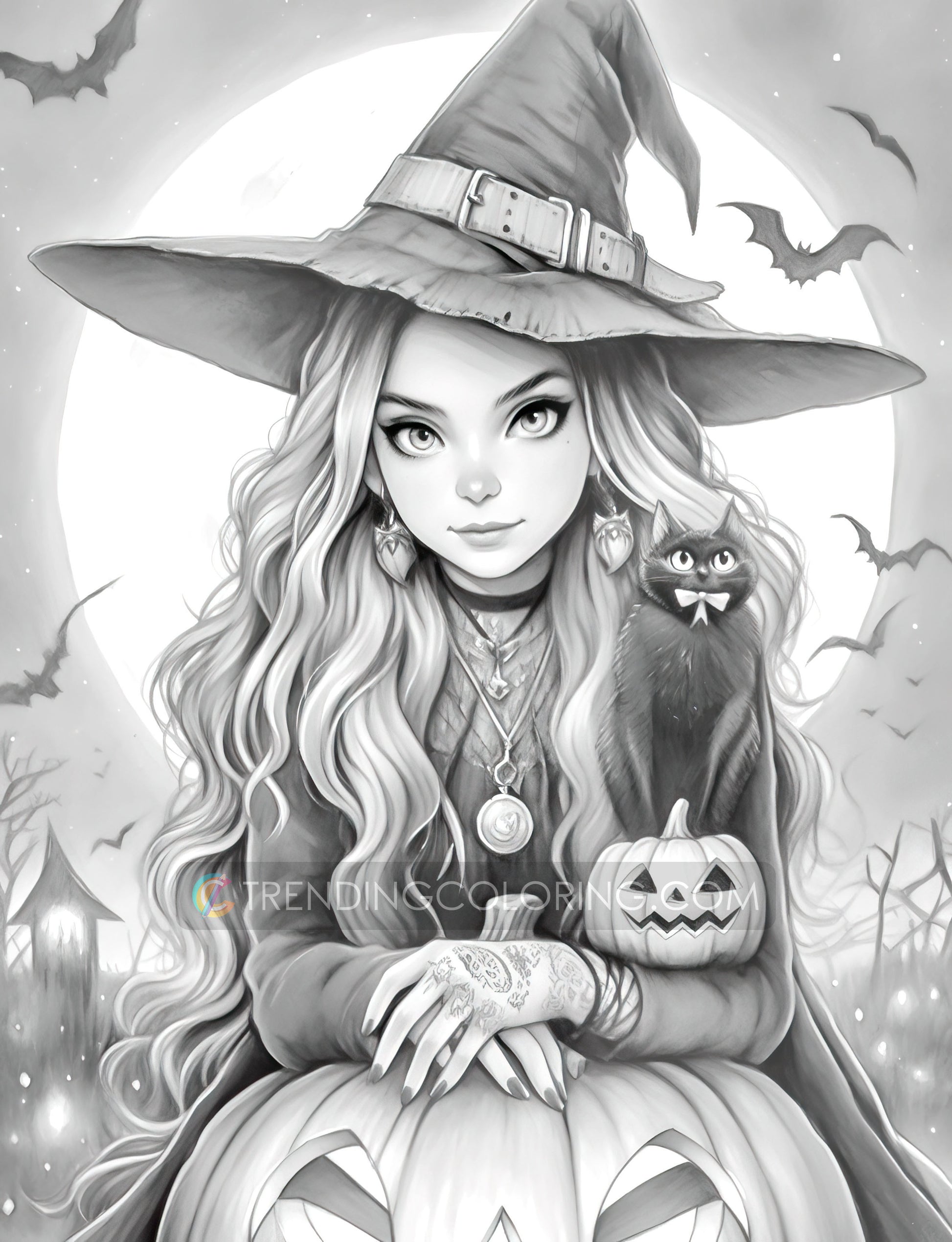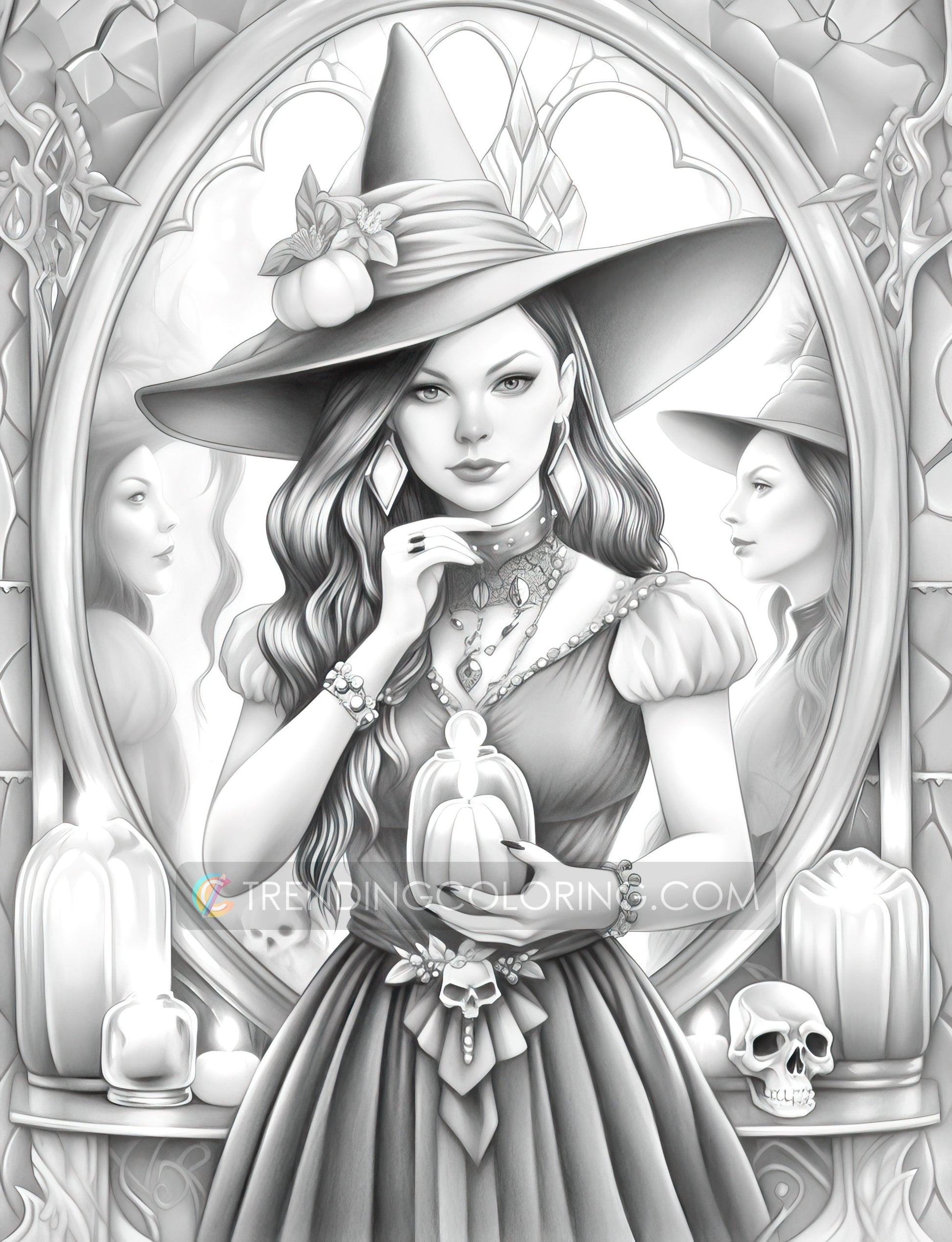 Halloween is a time of mystery and enchantment, and what better way to celebrate than by spending time coloring these bewitching ladies? The dark/light grayscale options provide the freedom to explore shading and tones, letting you decide whether your witches are ominously dark or ethereally light.