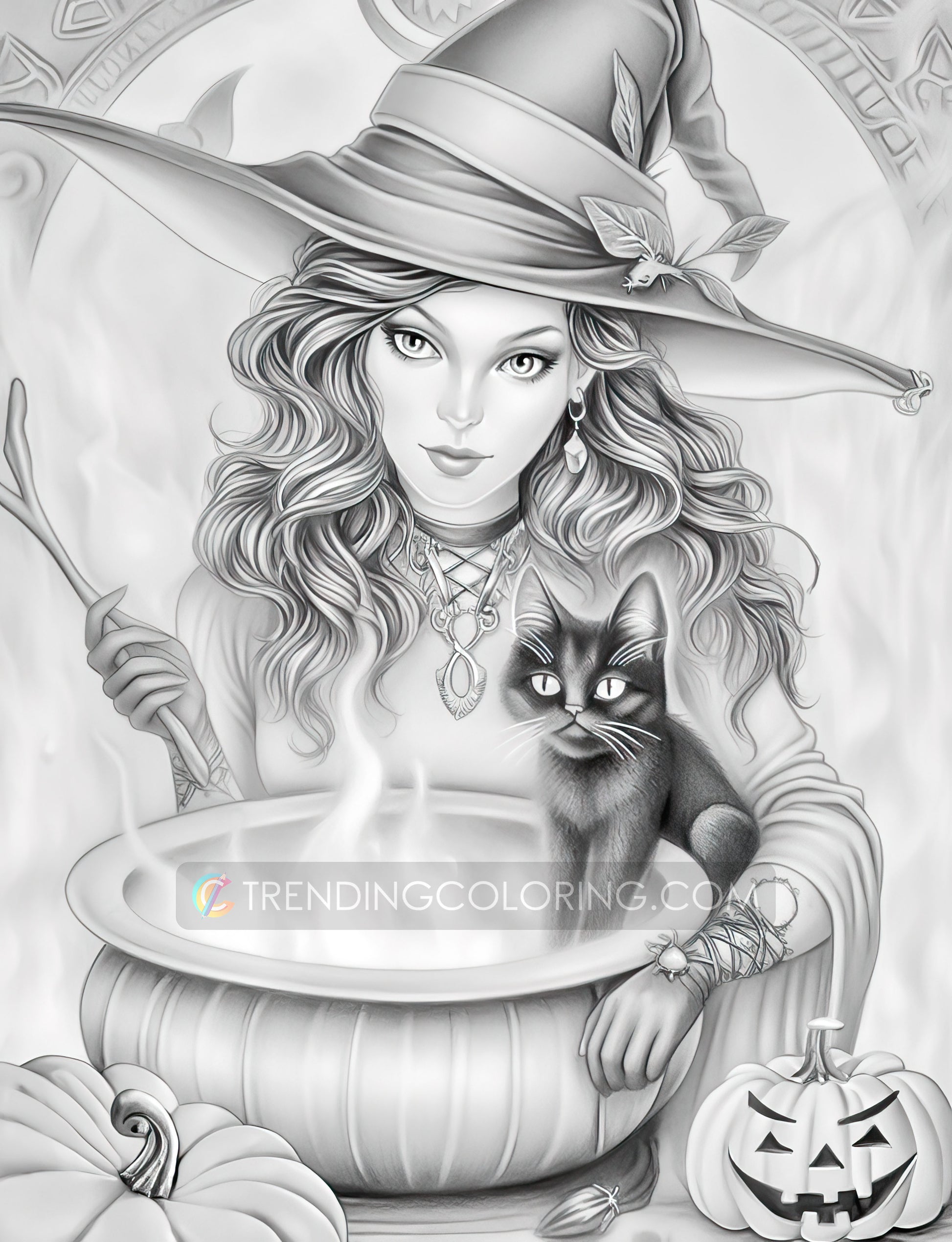 - 25 High-Quality Halloween Witches Grayscale Coloring Pages