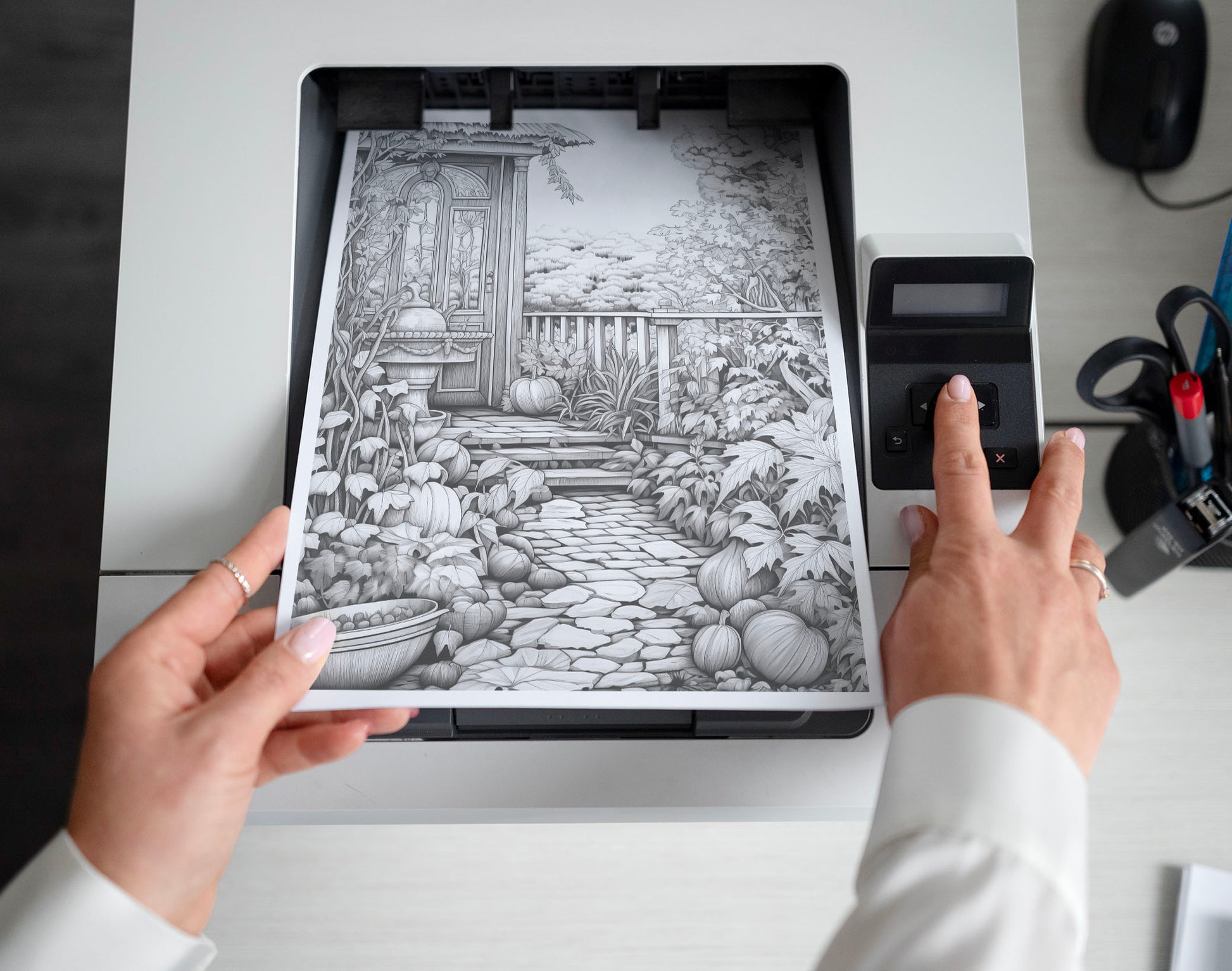 Step into the lush tranquility of the harvest season with our exclusive collection of 50 Autumn Garden Grayscale Coloring Pages. This meticulously crafted set invites you into the realm of autumnal flora, where the splendor of gardens meets the richness of Fall colors, offering an unparalleled canvas for your artistic creativity.