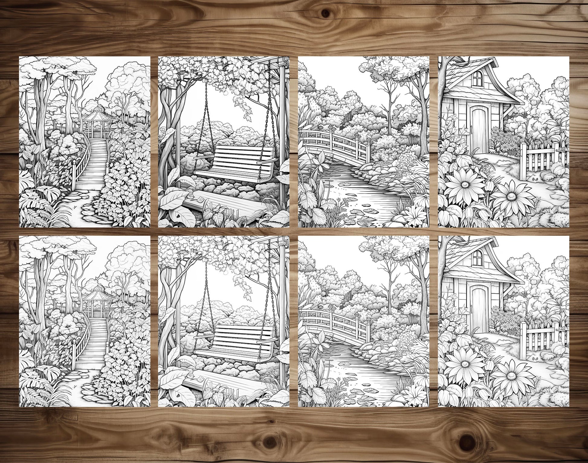 50 Autumn Garden Grayscale Coloring Pages - Instant Download - Printable PDF Dark/Light