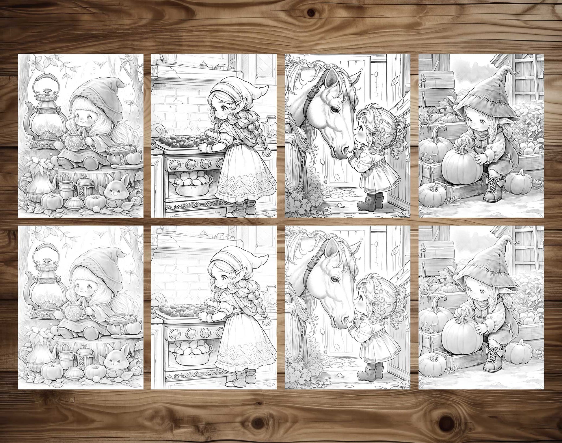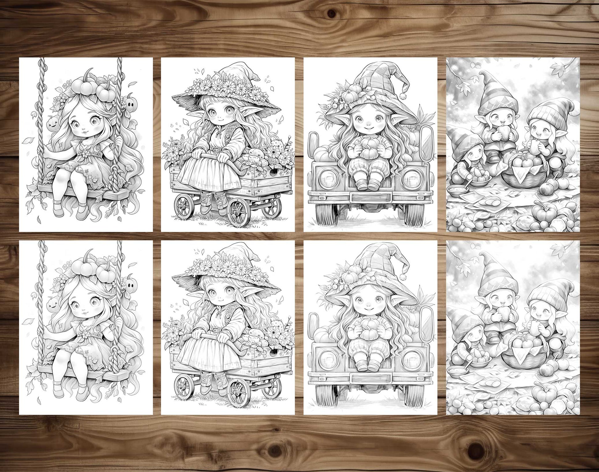 - 50 Unique Autumn Gnome Girl Grayscale Pages