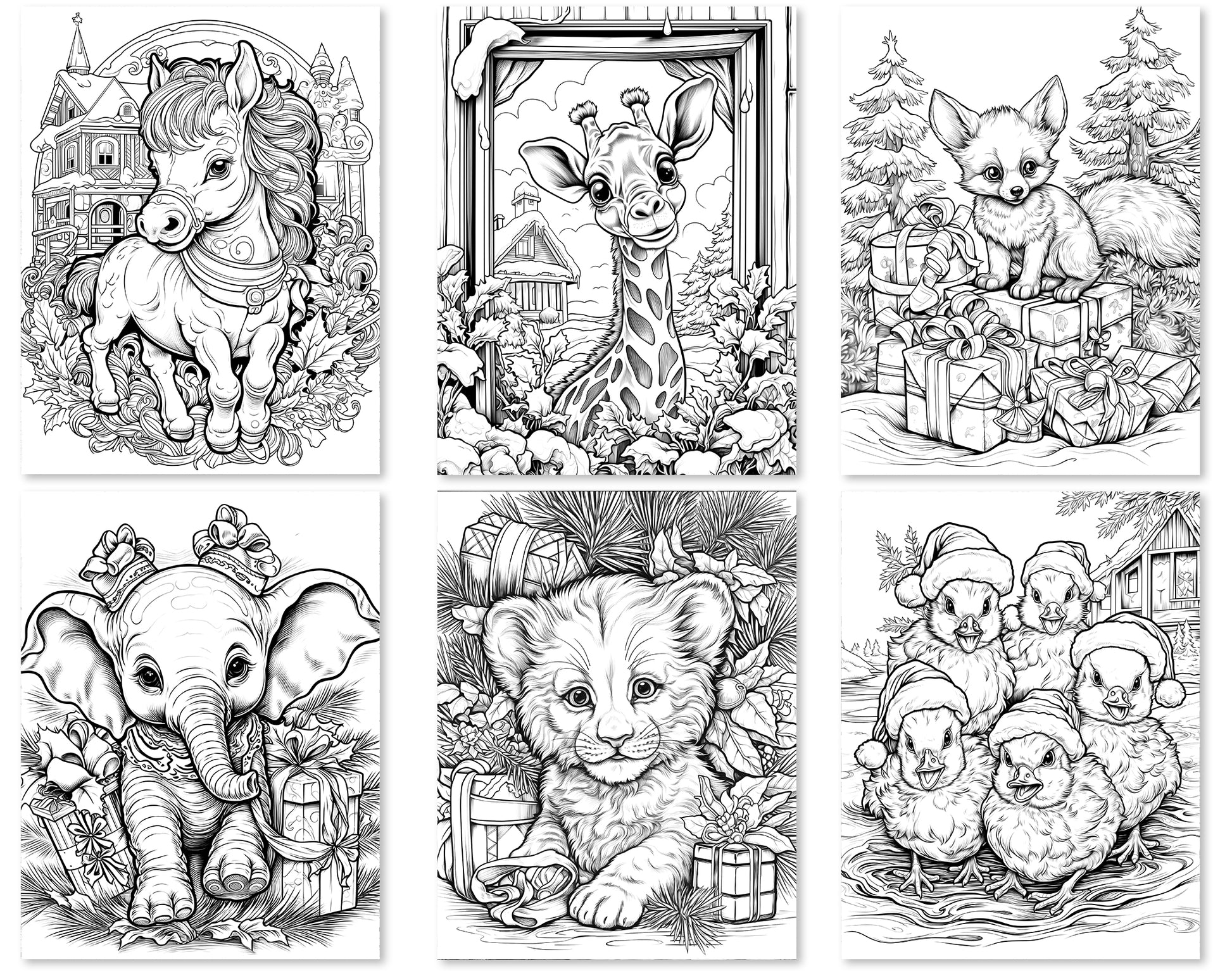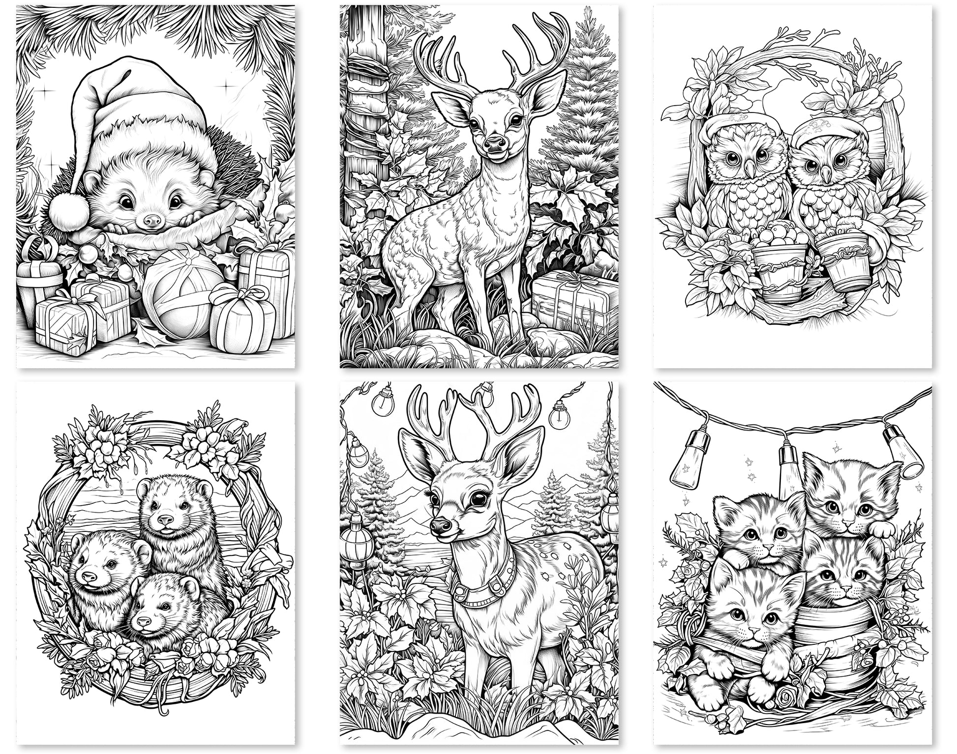 50 Christmas Critter 2 Coloring Pages - Instant Download - Printable PDF