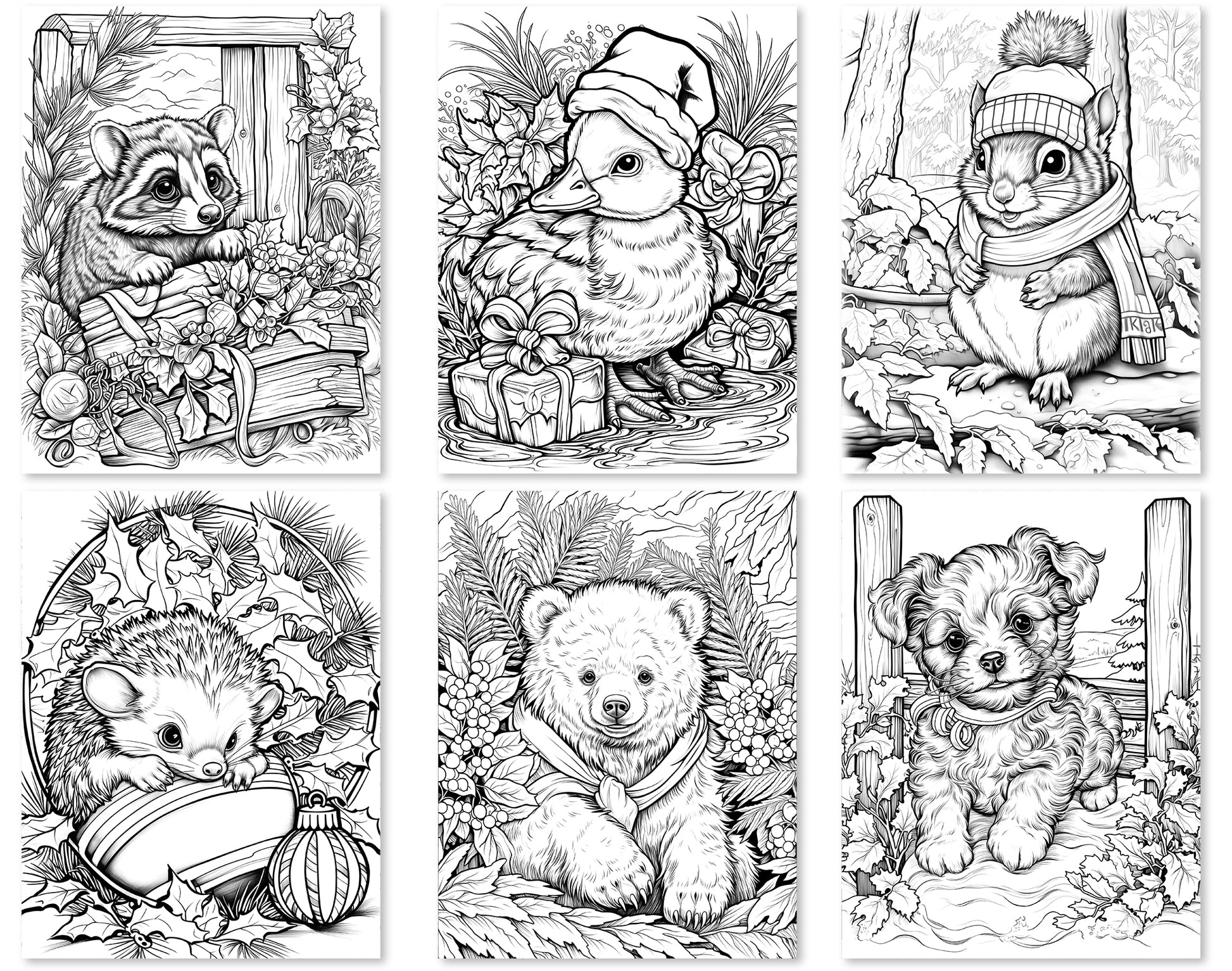 Delight in the festive charm of our 50 Christmas Critter 2 Coloring Pages, a collection that brings the joyous spirit of the holiday season to life through a delightful array of animal-themed scenes. This set is perfect for anyone who loves the combination of adorable critters and the festive cheer of Christmas.