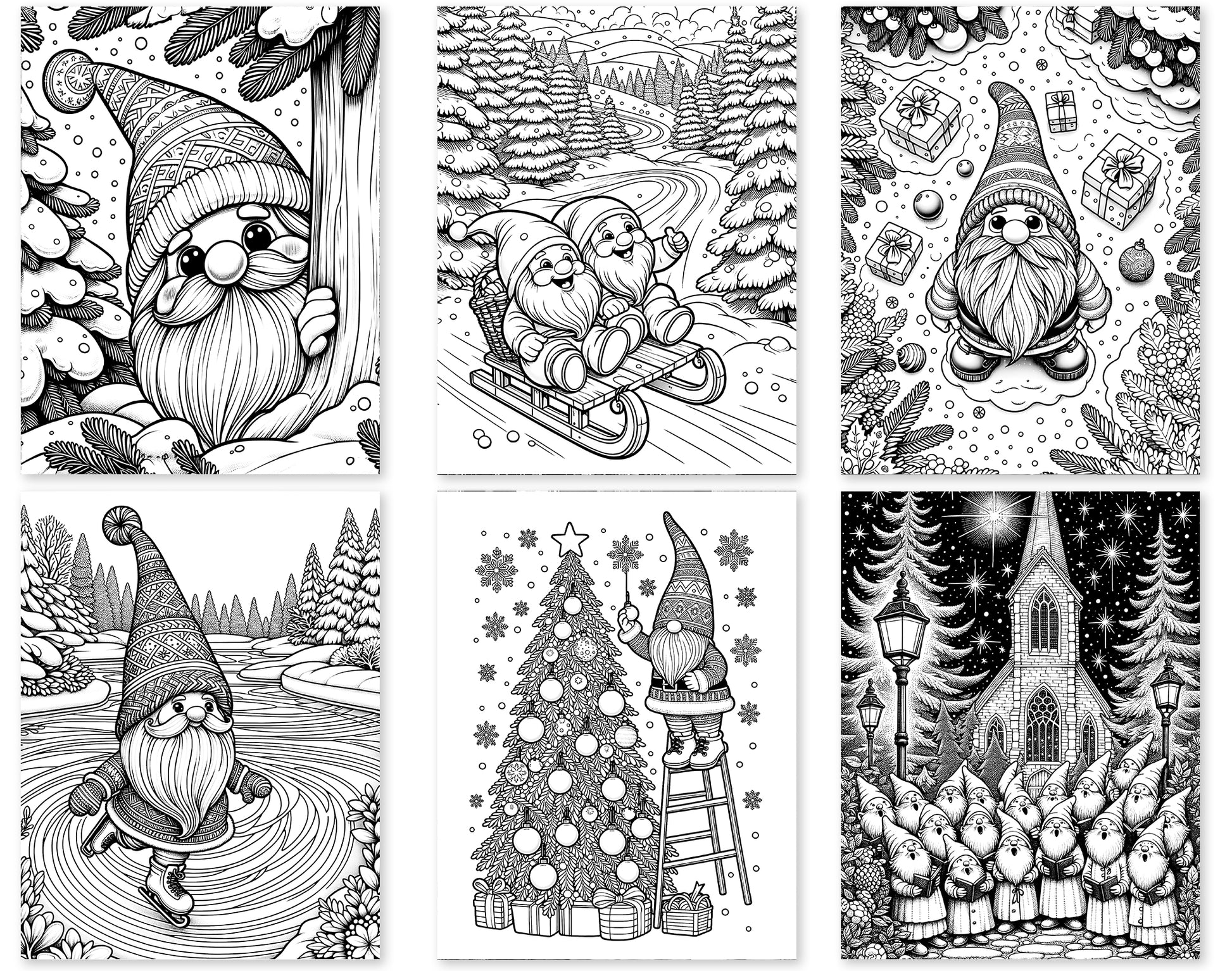 50 Christmas Gnomes Coloring Pages - Instant Download - Printable PDF