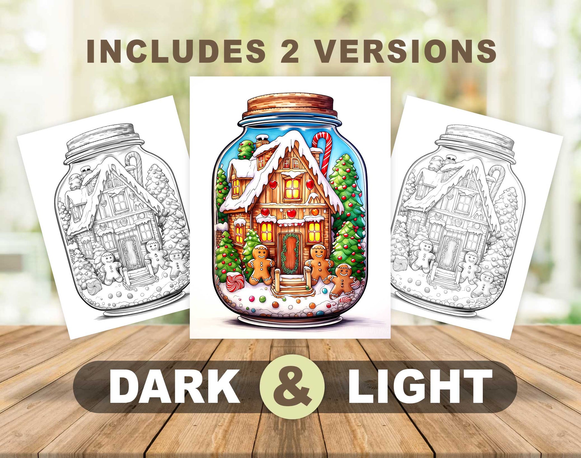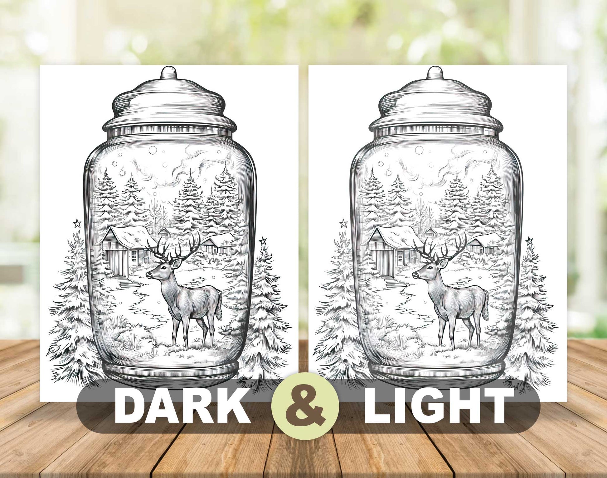 50 Christmas In Jar Grayscale Coloring Pages - Instant Download - Printable PDF Dark/Light