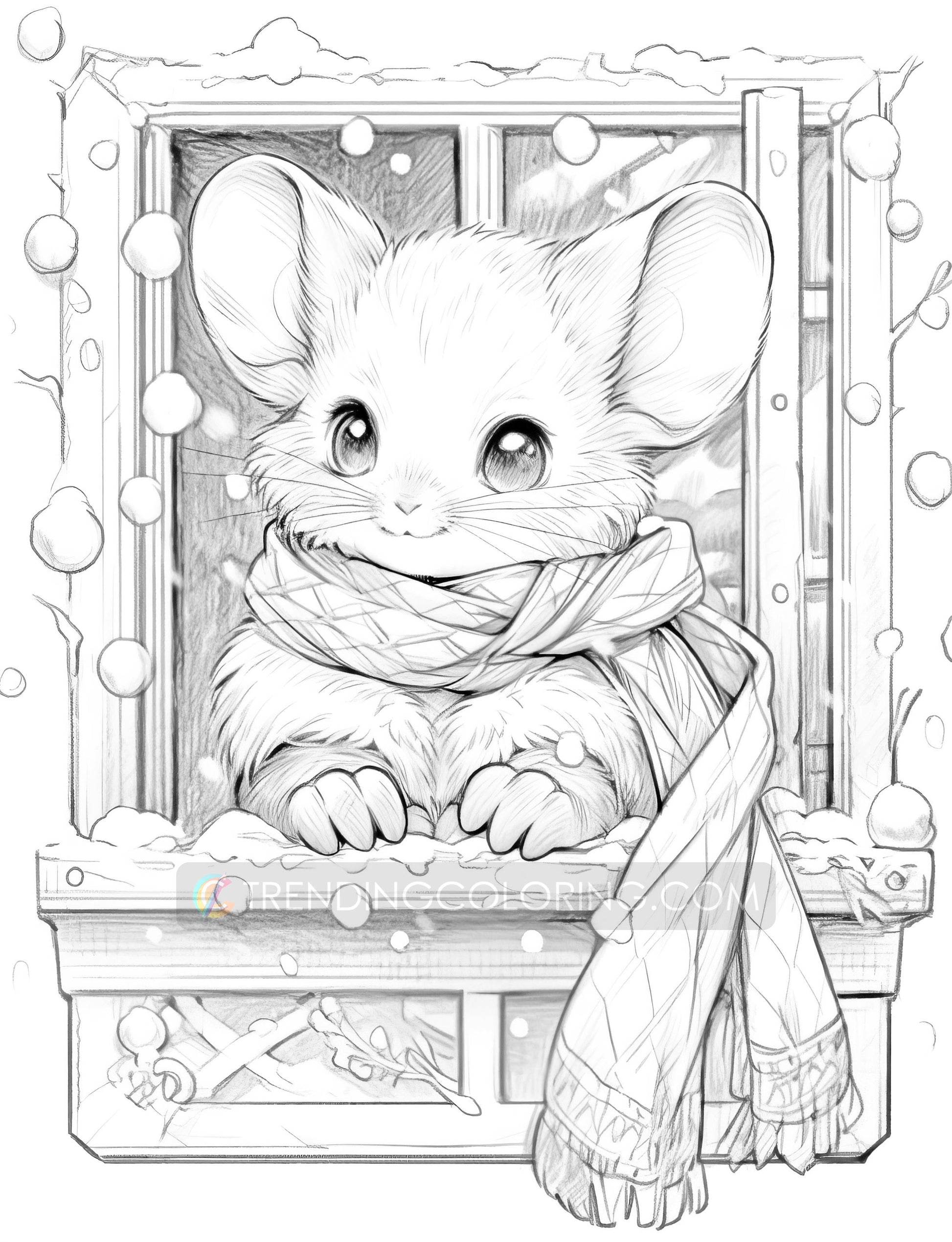 - 50 Adorable Christmas Little Mouse Grayscale Pages