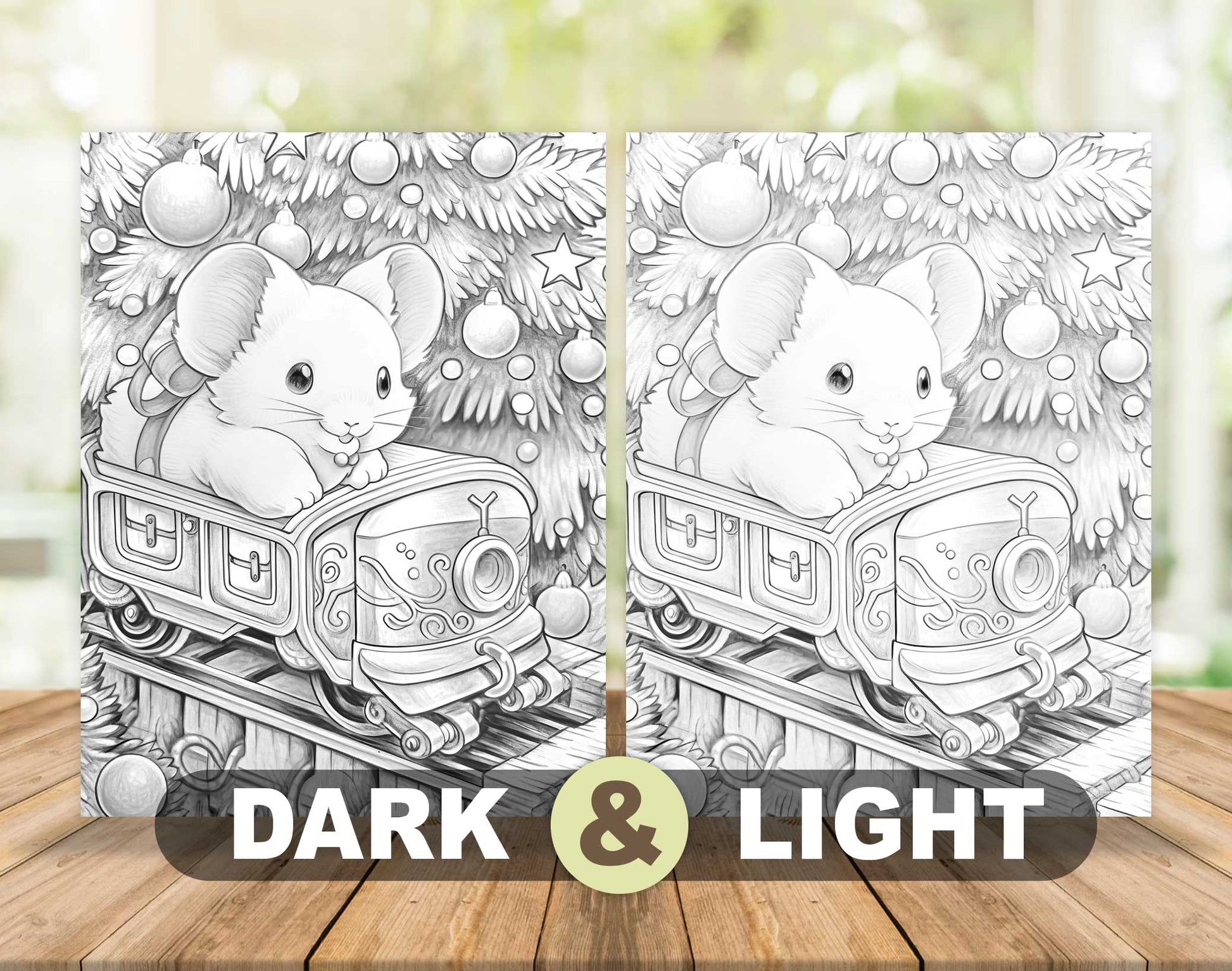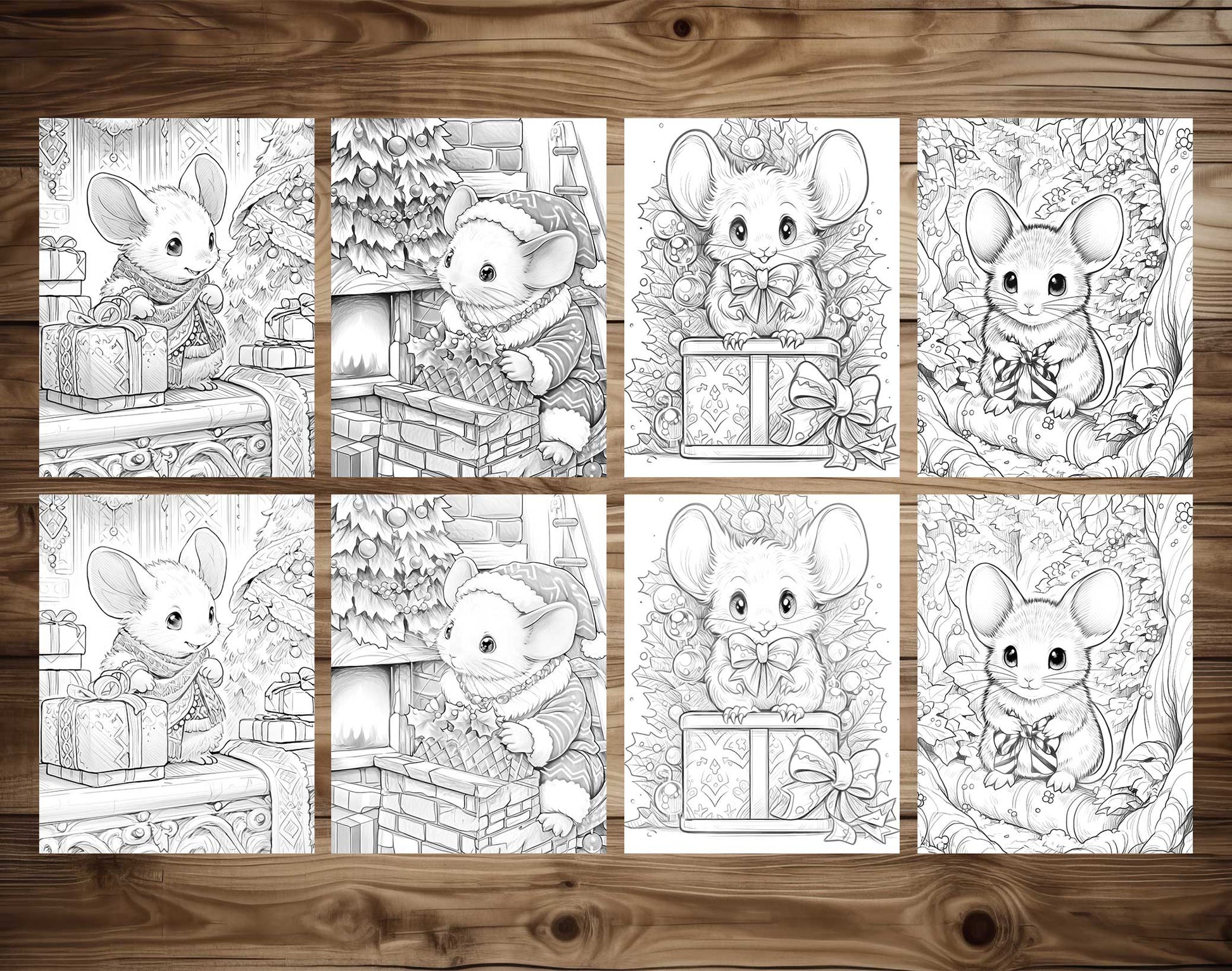 50 Christmas Little Mouse Grayscale Coloring Pages - Instant Download - Printable PDF Dark/Light