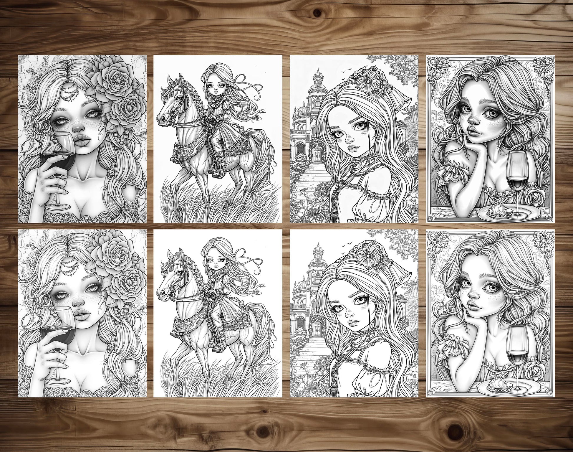 - 50 Stylish Classy Girl-Themed Grayscale Coloring Pages