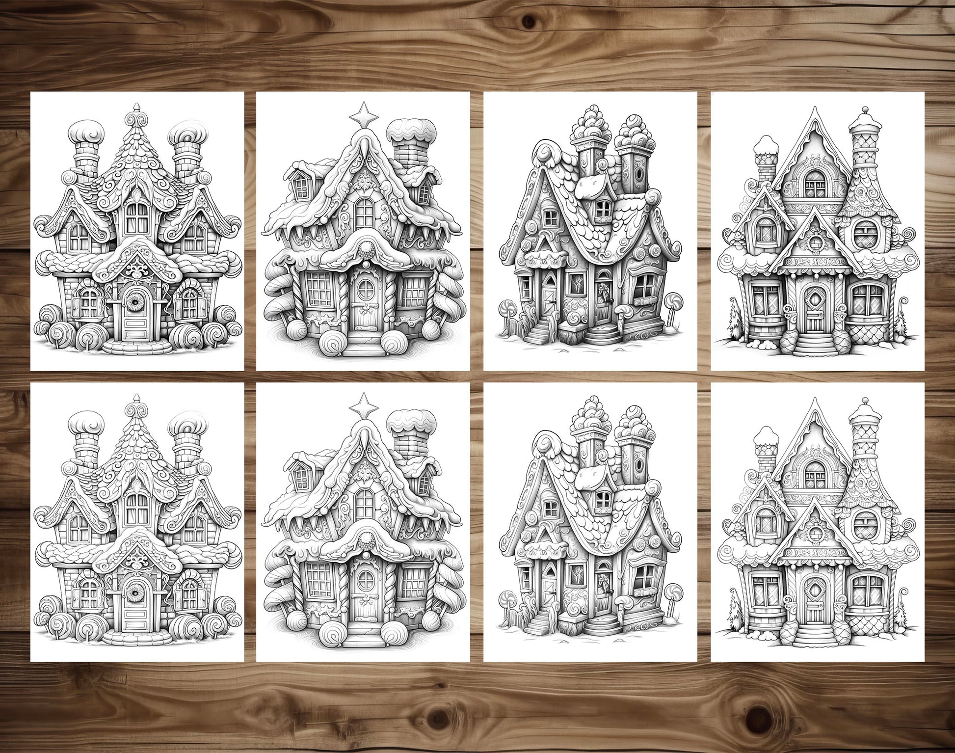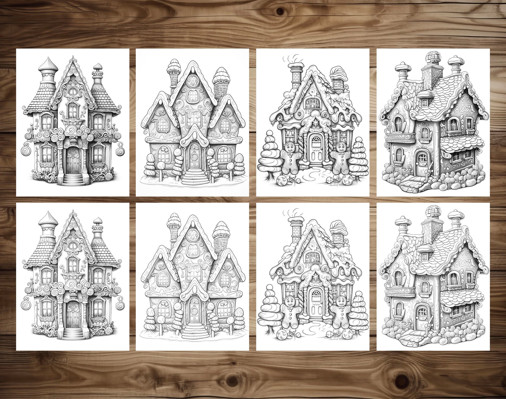 50 Gingerbread House Grayscale Coloring Pages - Instant Download - Printable PDF Dark/Light
