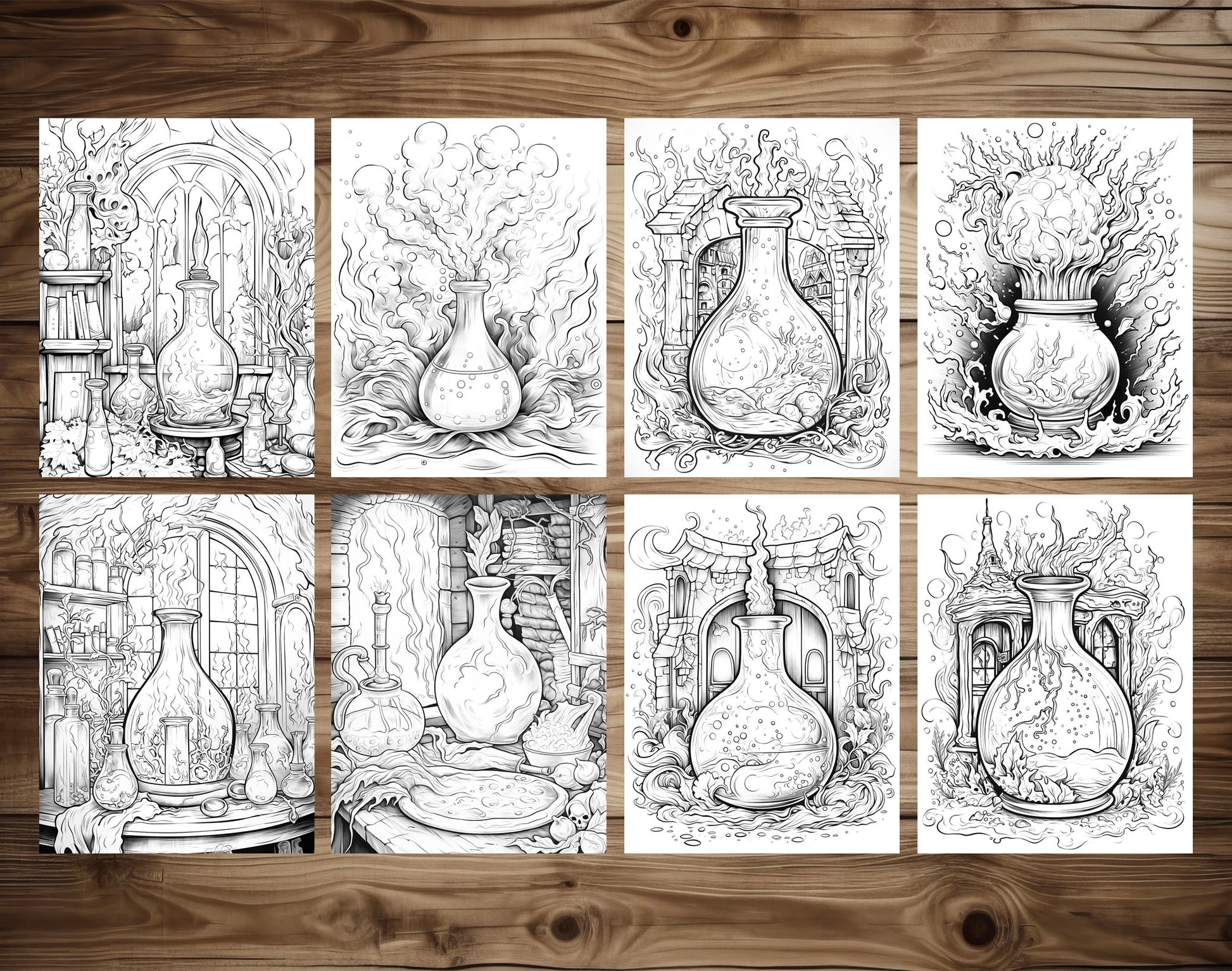 - 50 Unique Magic Potion Grayscale Pages