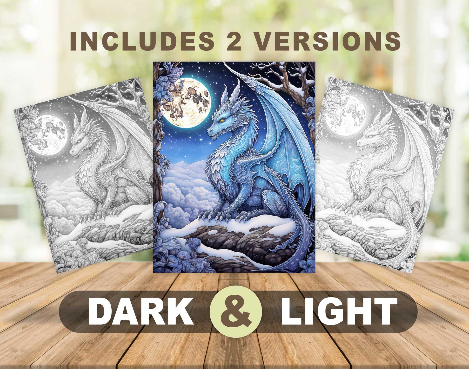 50 Winter Dragon Grayscale Coloring Pages - Instant Download - Printable PDF Dark/Light