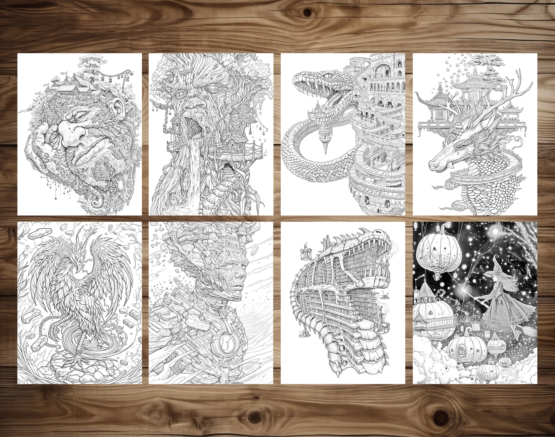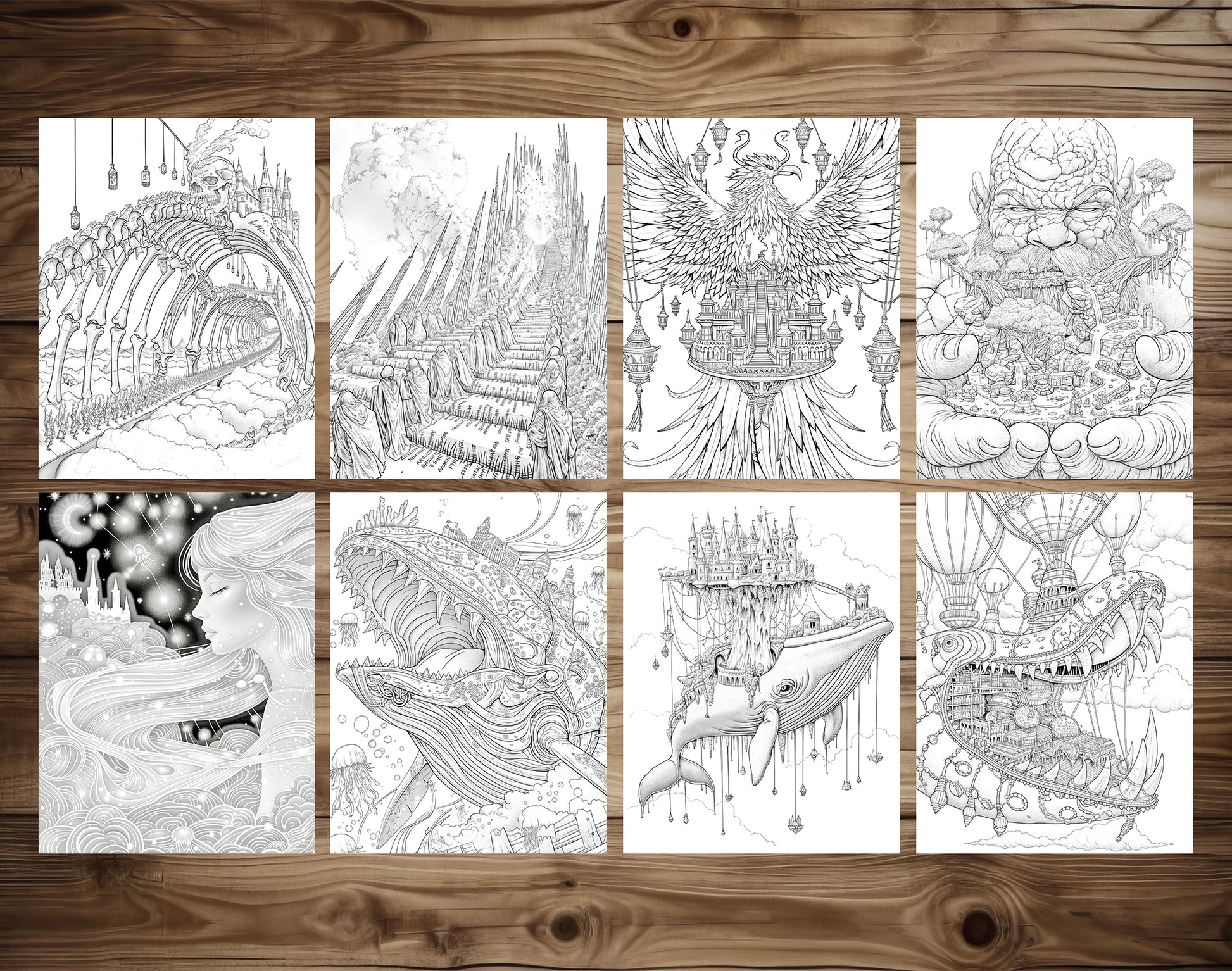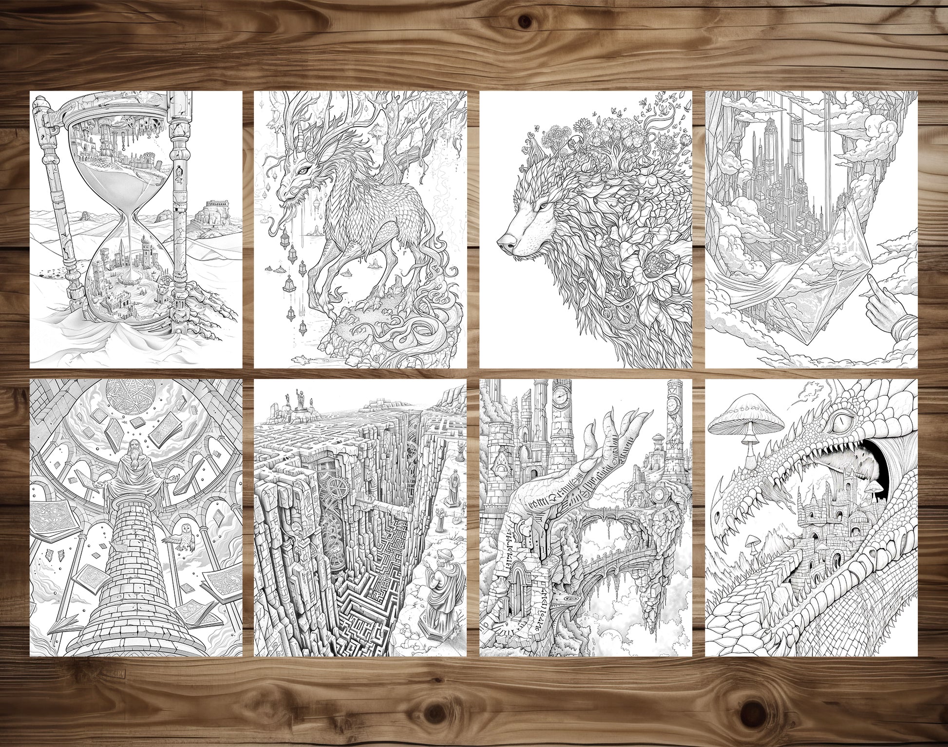 From majestic castles and celestial dreamscapes to mystical beings and enchanted forests, each page is a doorway to a world of wonder, ready to be brought to life with your creativity.
