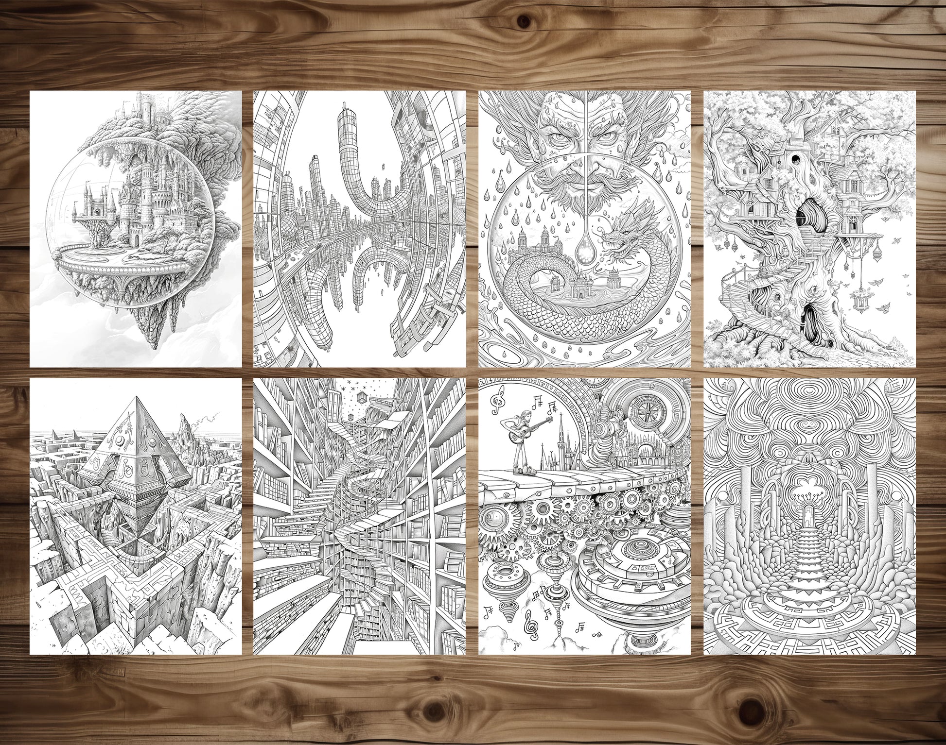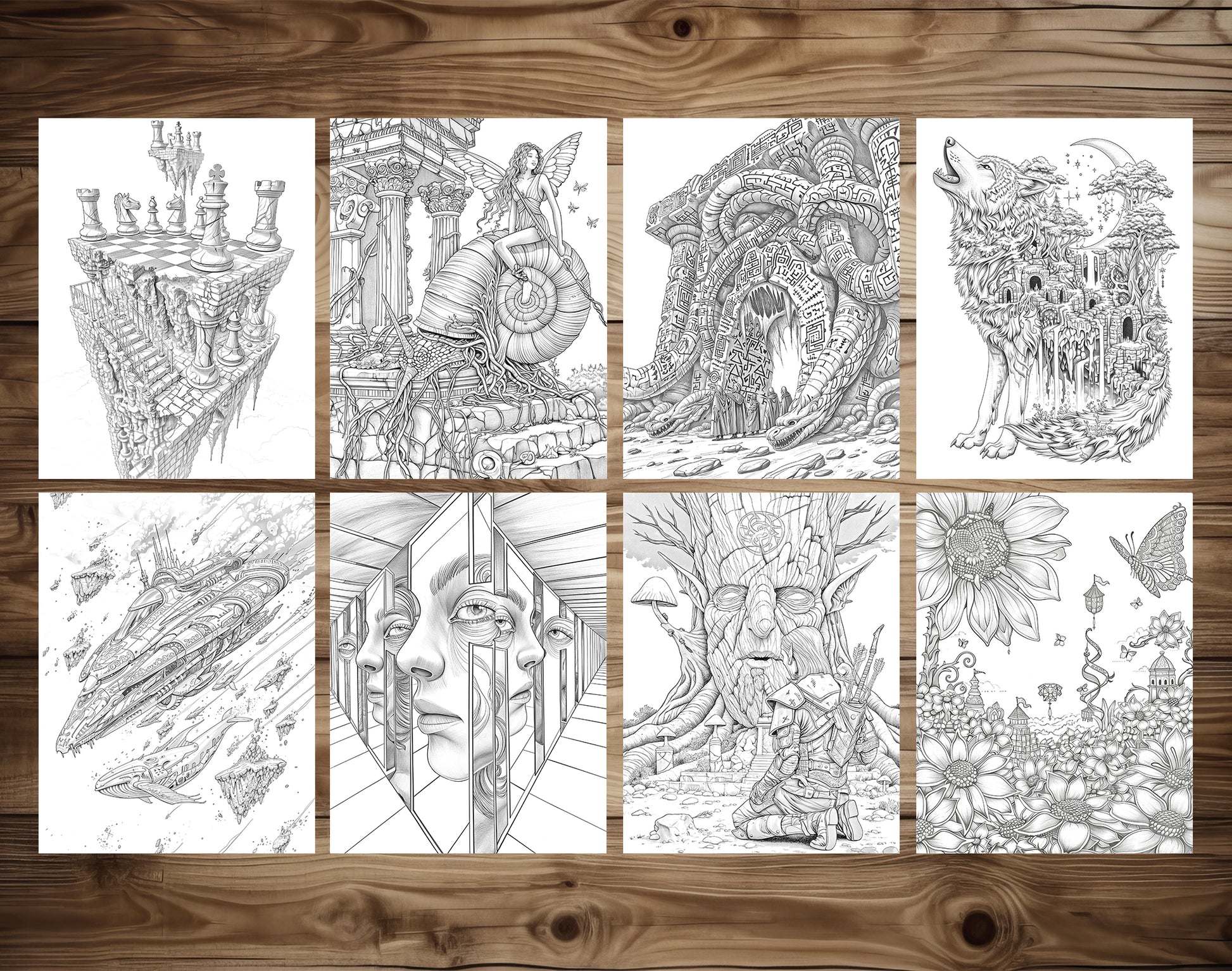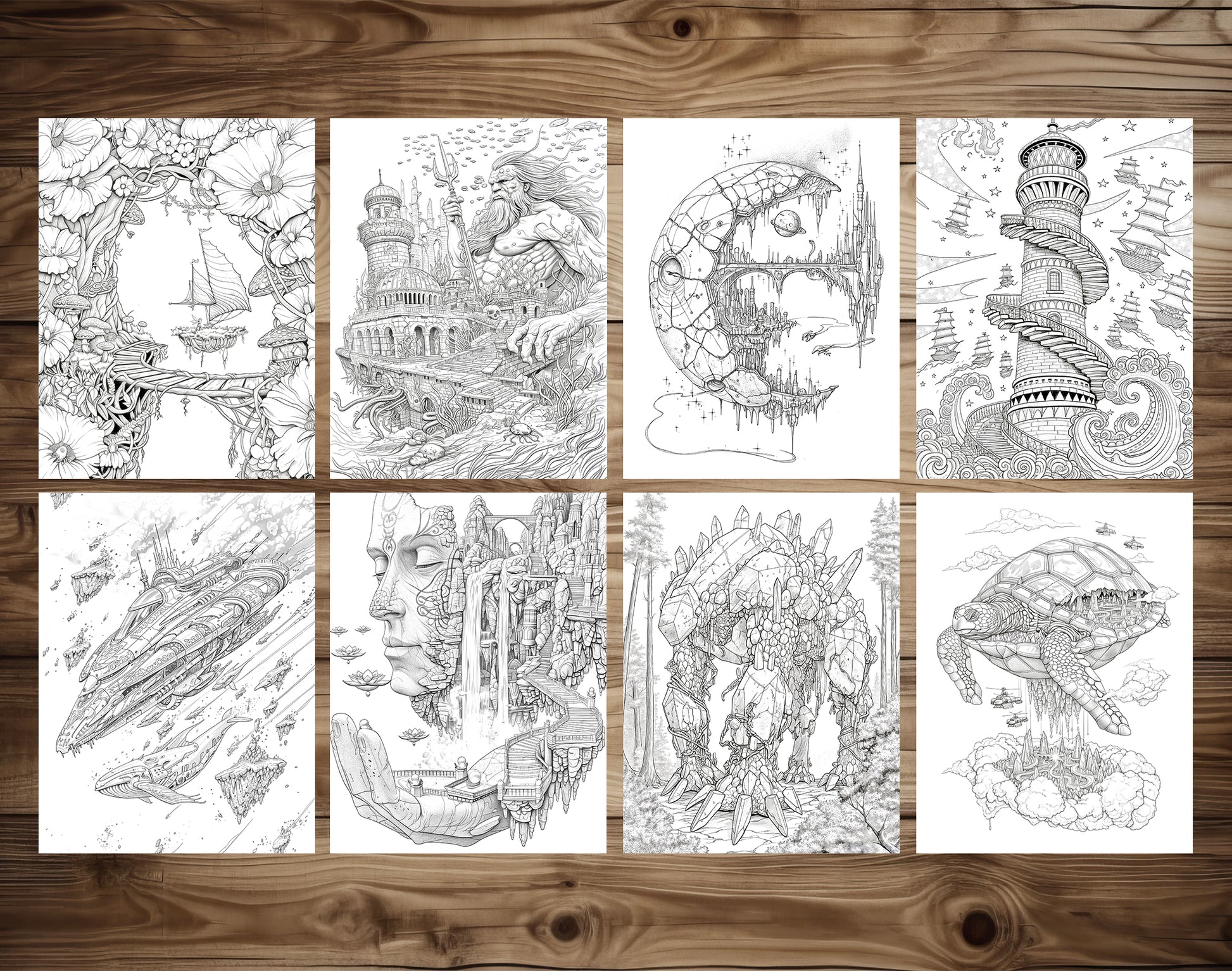 From majestic castles and celestial dreamscapes to mystical beings and enchanted forests, each page is a doorway to a world of wonder, ready to be brought to life with your creativity.
