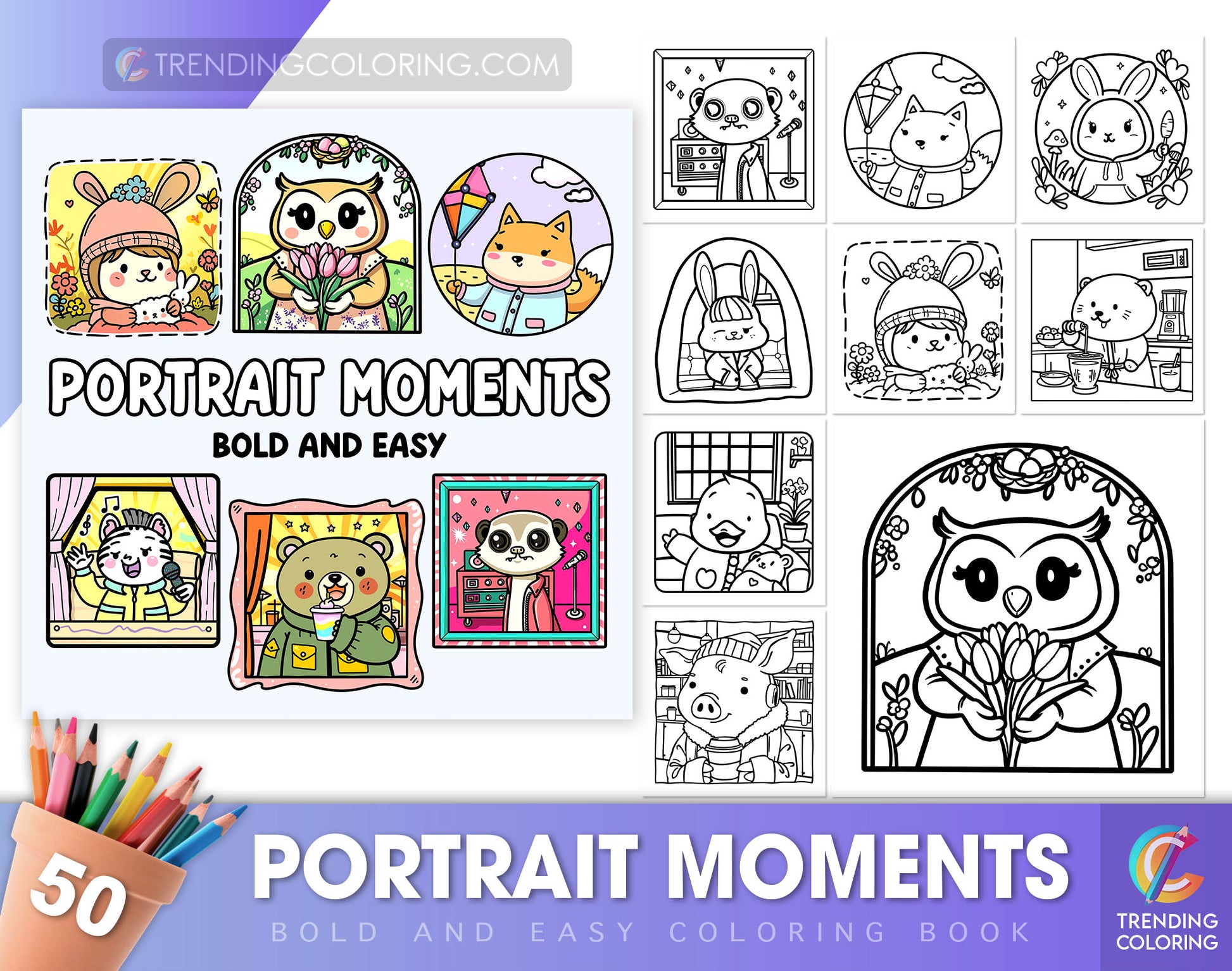 50 Portrait Moments Bold and Easy Coloring Pages - PDF Download