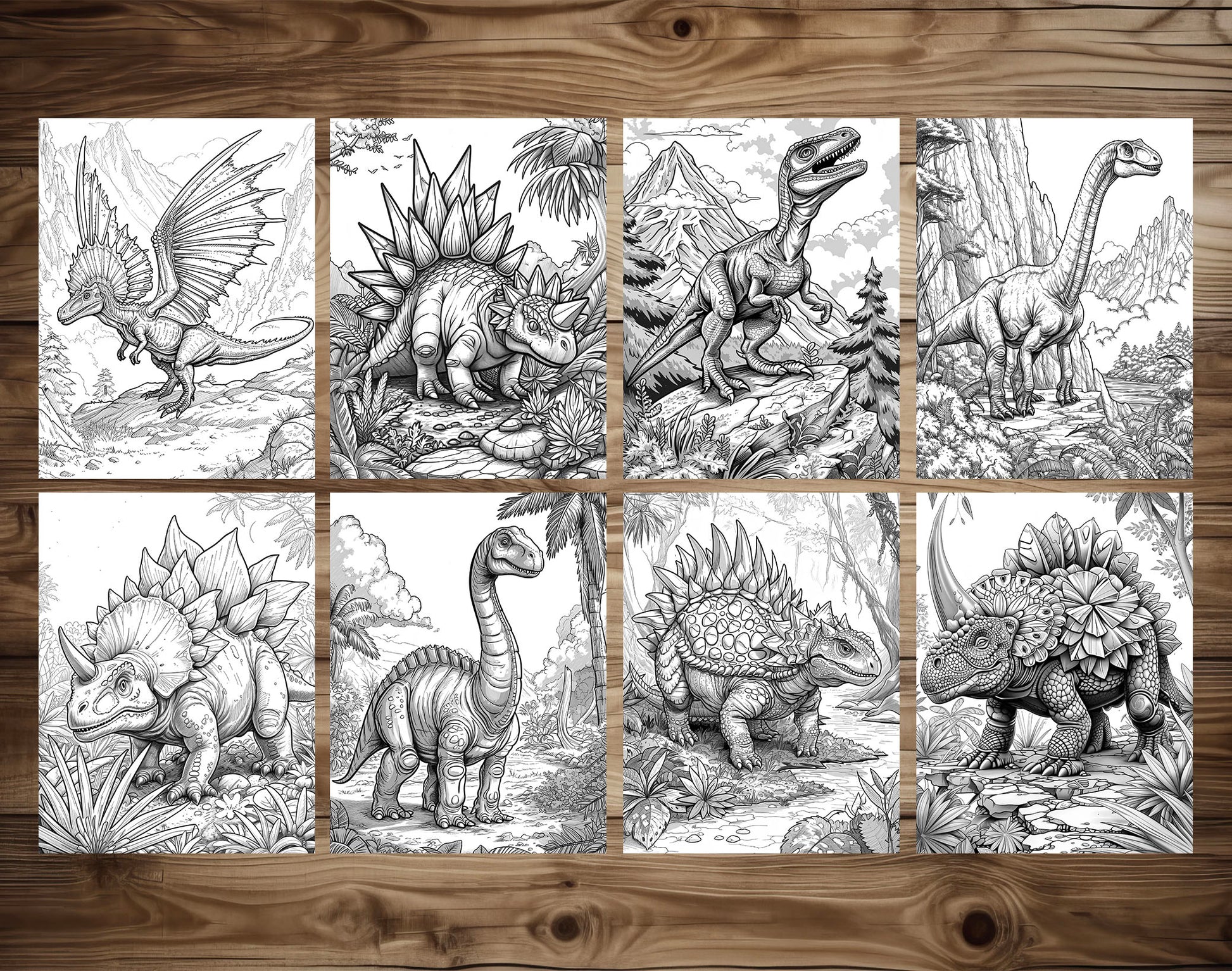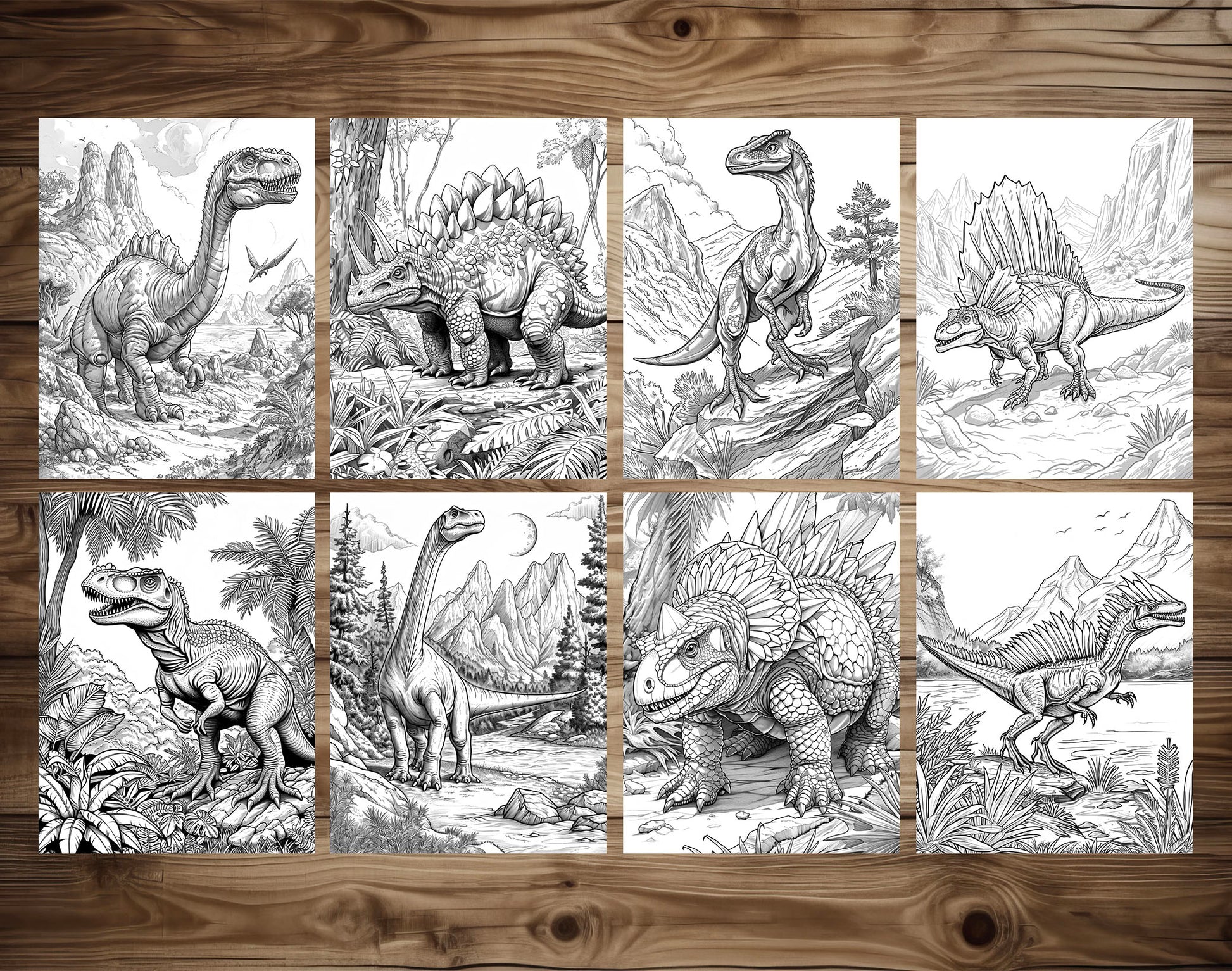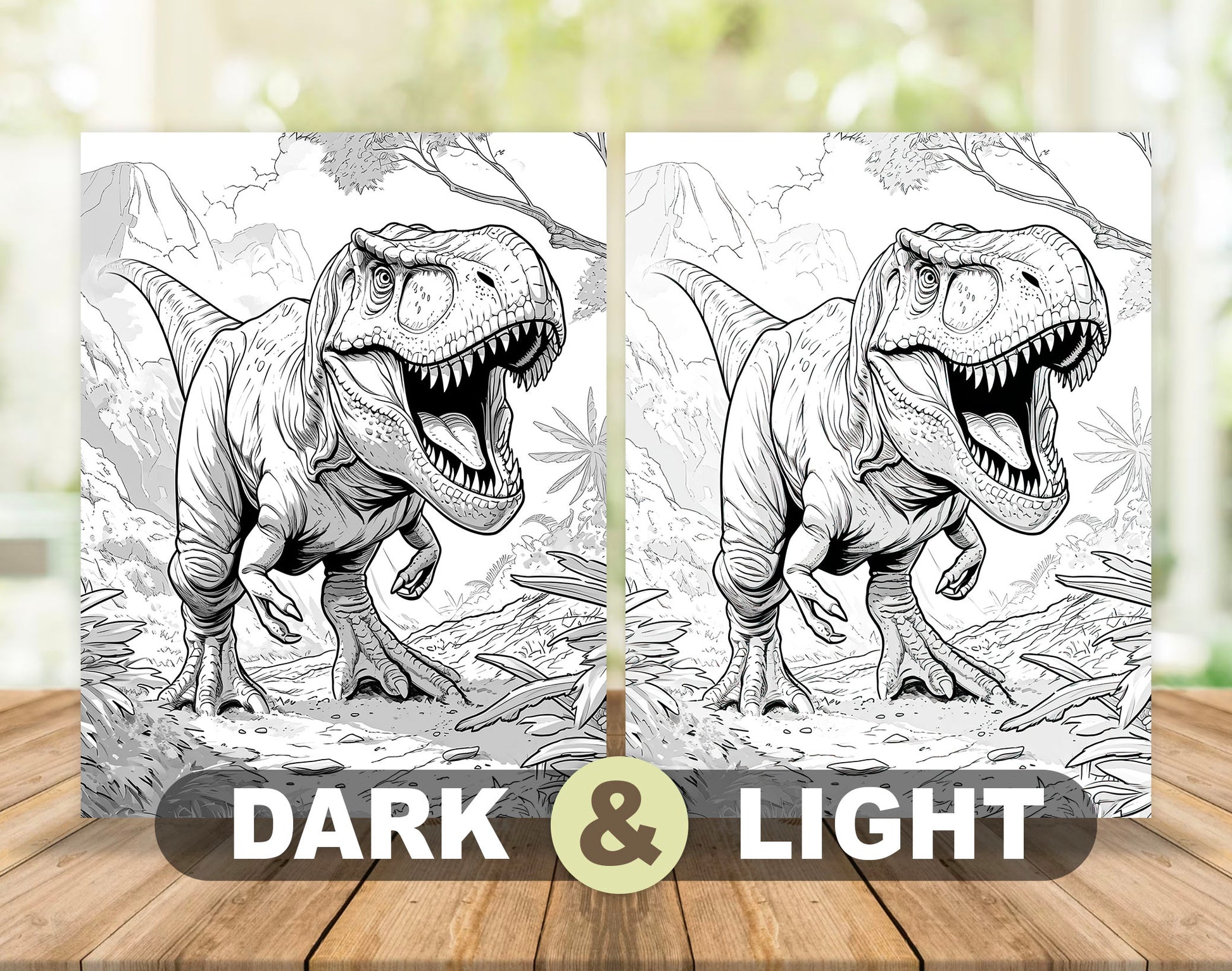 - Dual Grayscale Options: Whether you prefer the boldness of dark grayscale or the subtlety of light grayscale, this collection caters to your coloring style, enhancing the texture and depth of these prehistoric scenes.