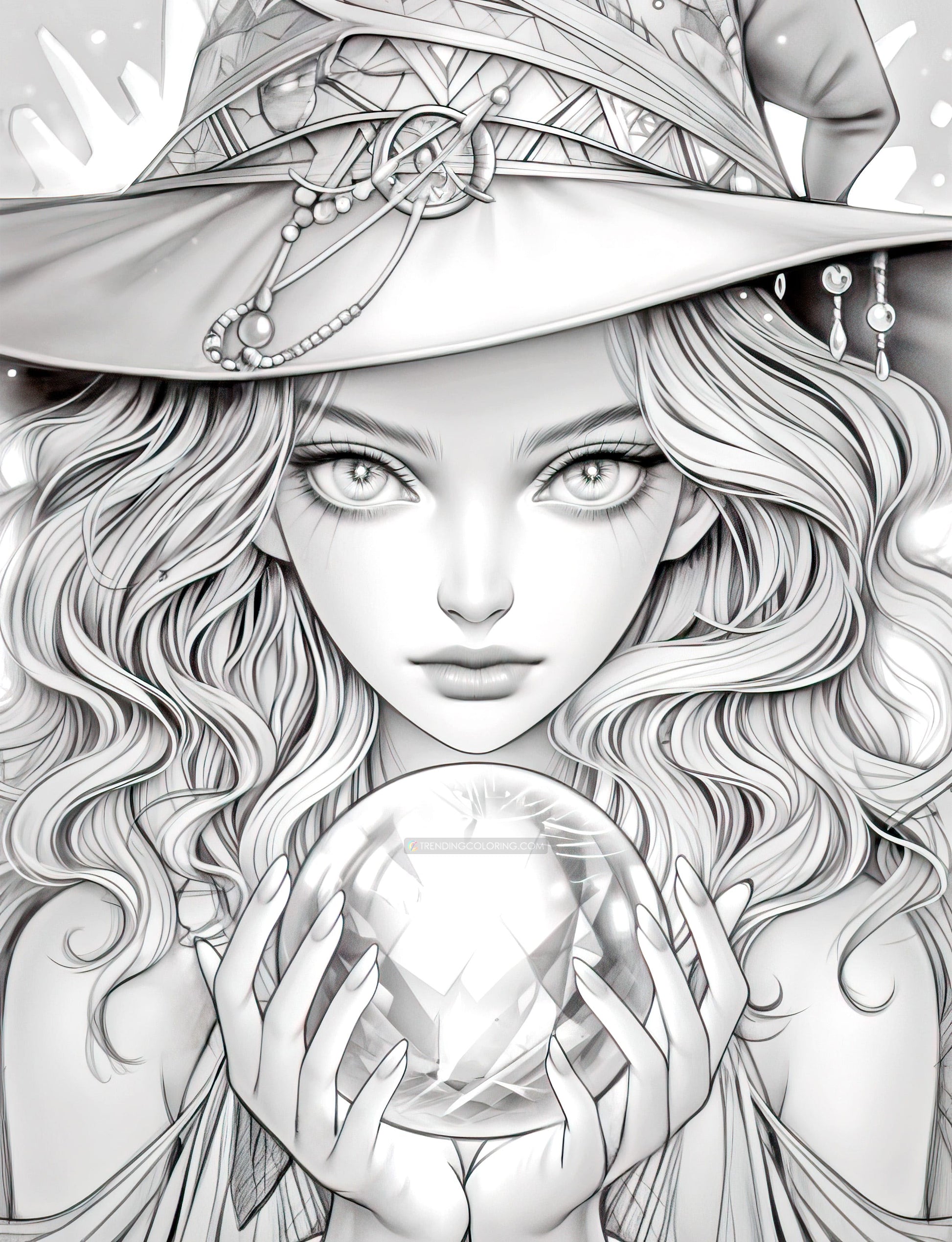 - 70 High-Quality Beauty Witches Grayscale Coloring Pages.