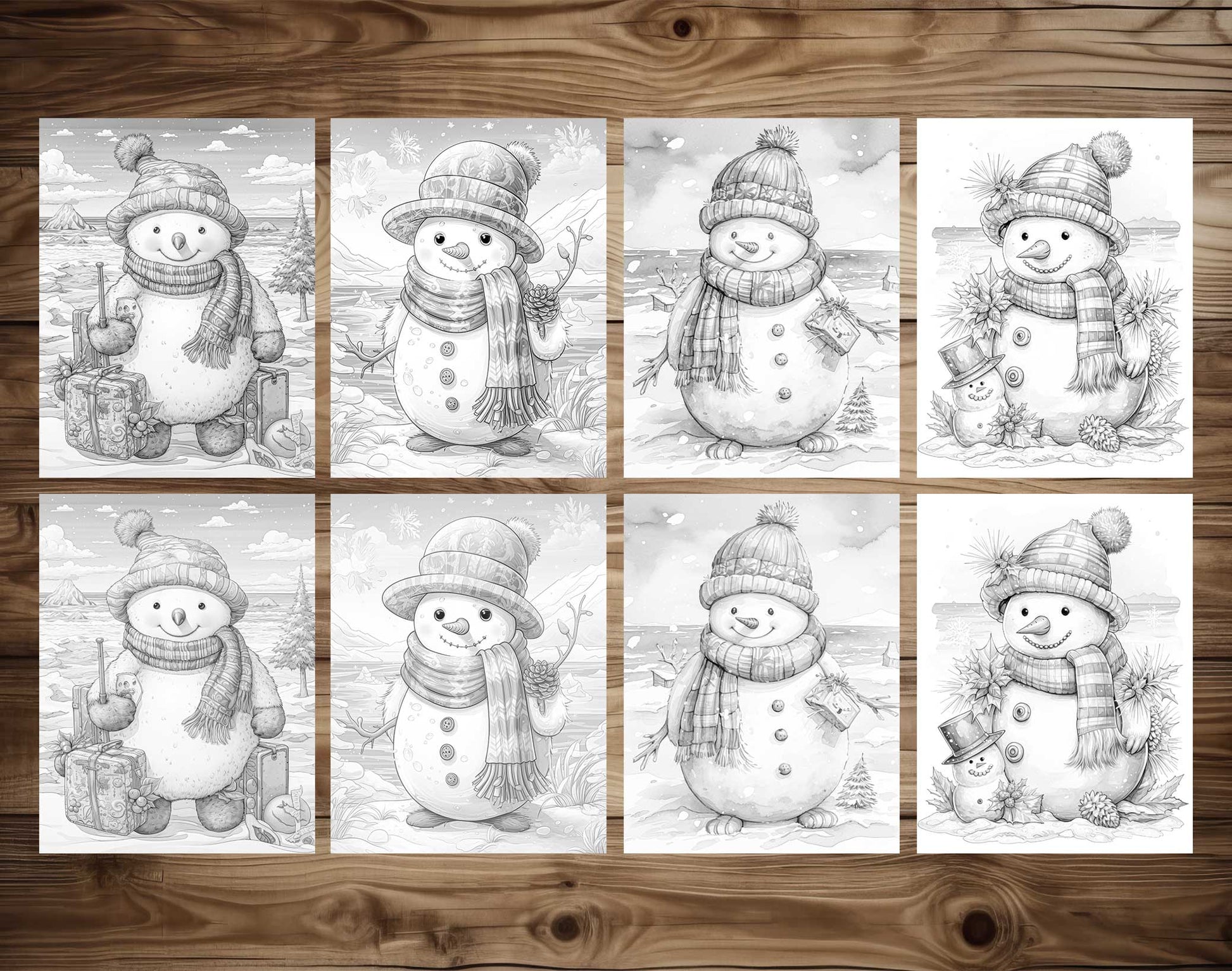 As you delve into this collection, you'll find a variety of scenes showcasing snowmen in various playful and adventurous settings. From snowy landscapes to festive gatherings, each grayscale page is intricately designed, offering a delightful challenge to colorists of all levels. The grayscale shading provides a guide for depth and shadow, allowing you to create stunning, lifelike scenes with your choice of colors.