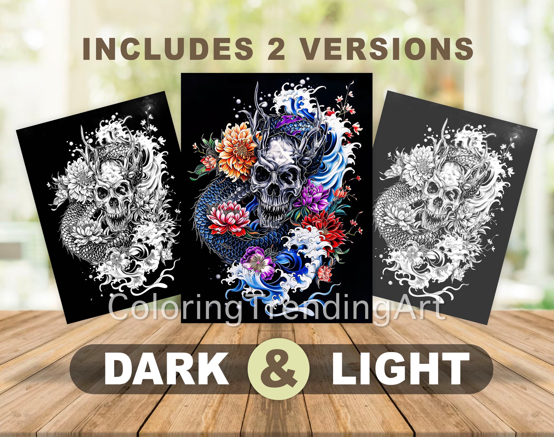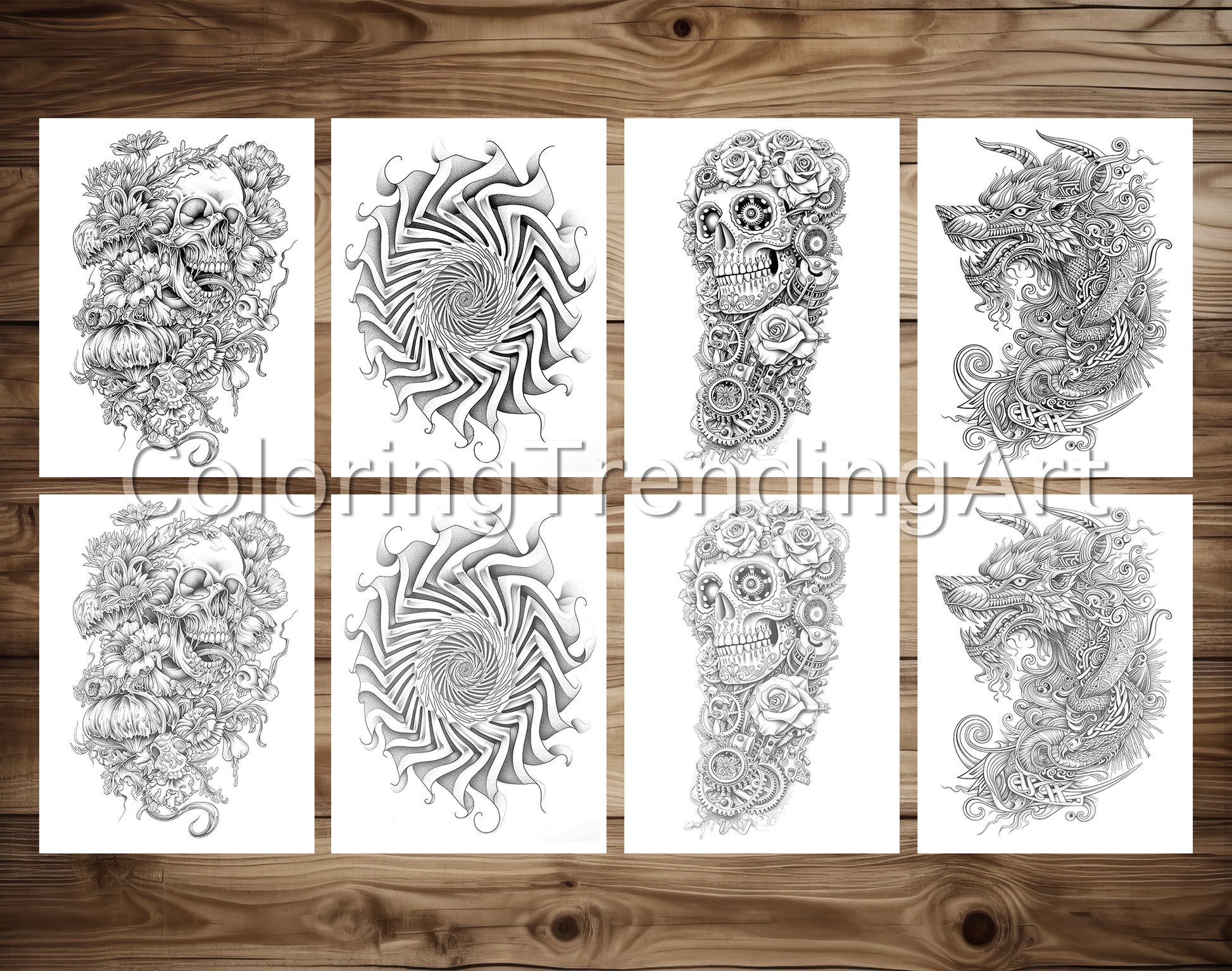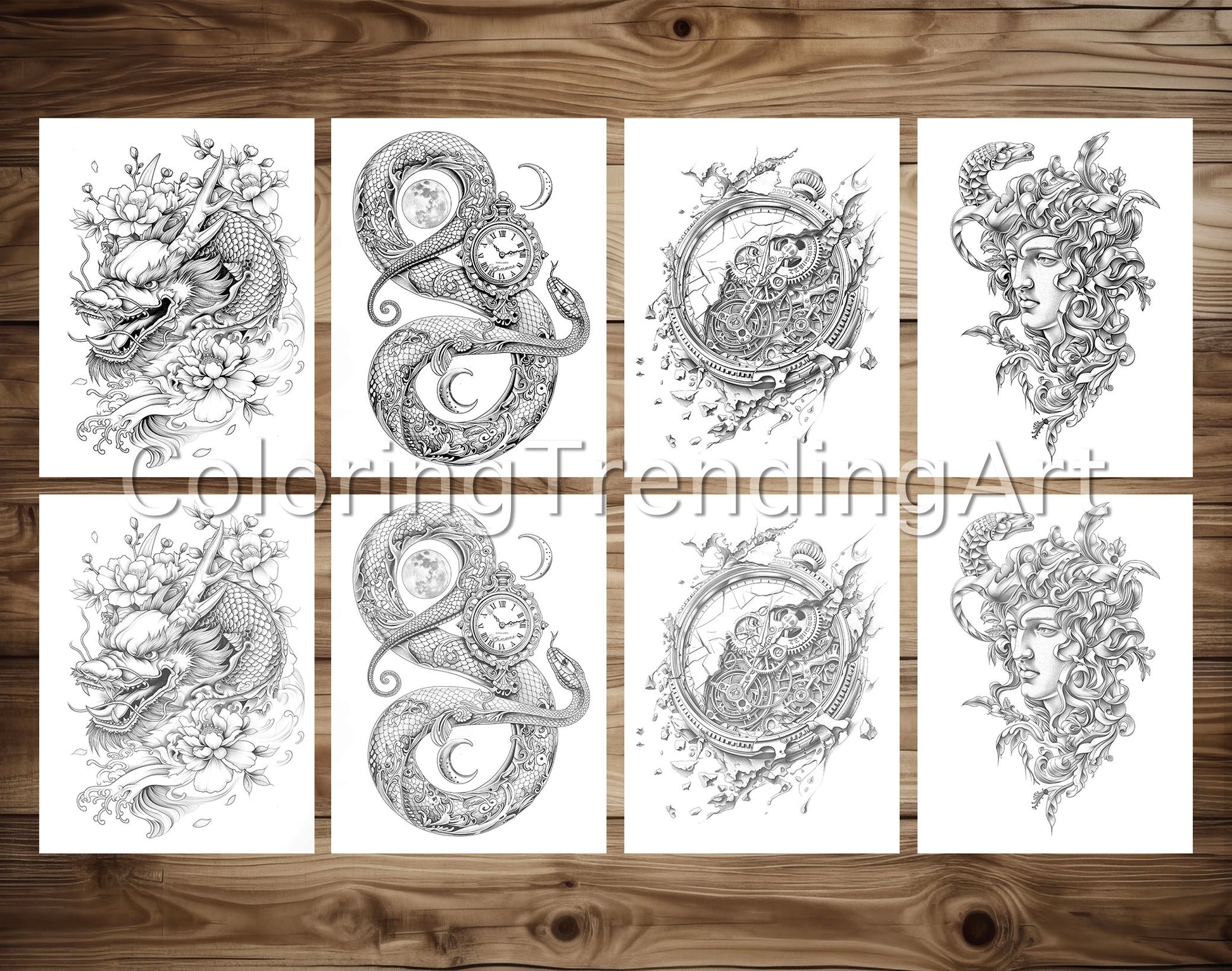 101 Tattoos Therapy 2 Grayscale Coloring Pages - Instant Download - Printable Dark/Light