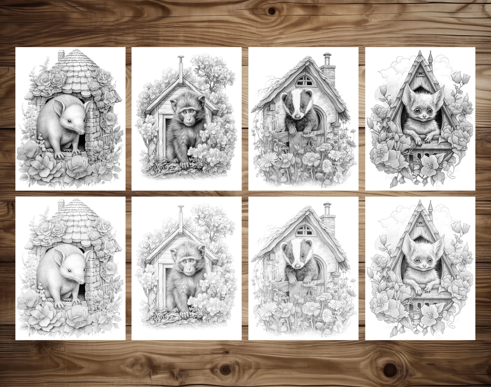 Embark on an adorable journey with our "101 Baby Animal Home Grayscale Coloring Pages". This endearing collection, instantly downloadable and printable in both dark and light grayscale, features delightful scenes of baby animals in their cozy homes, combining the innocence of wildlife with the charm of their natural habitats.