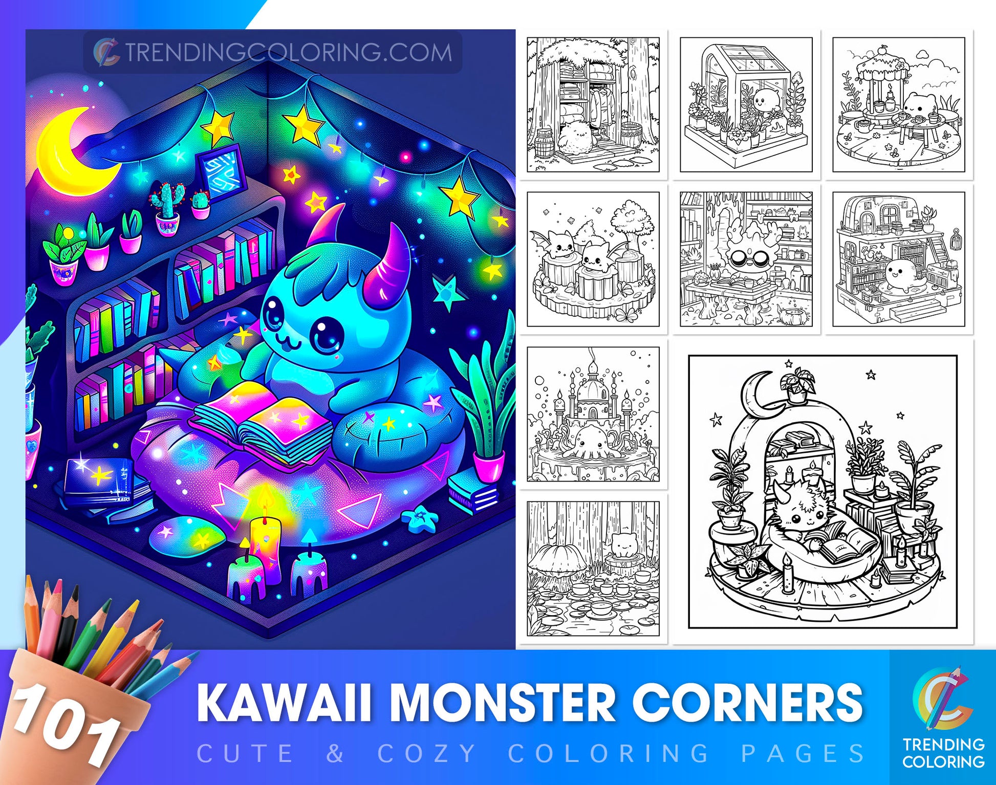 Whether you're seeking a relaxing break from daily routines or looking to share creative moments with loved ones, "101 Kawaii Monster Corners Cute & Cozy Coloring Pages" promises to bring laughter, whimsy, and delightful tranquility to your coloring adventures.