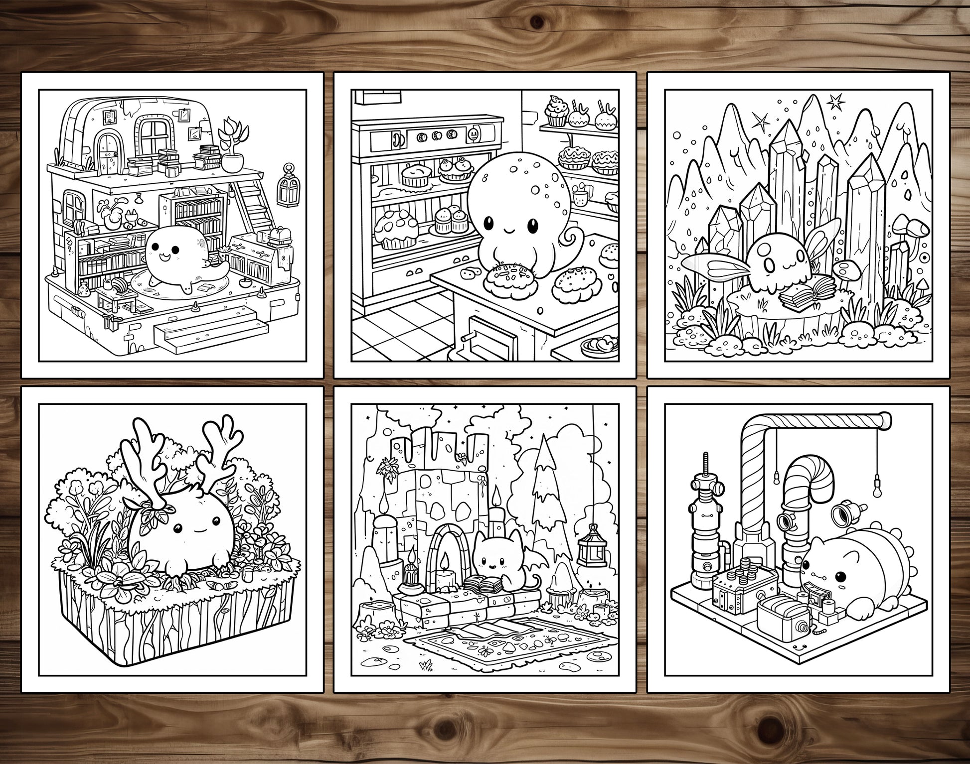 101 Kawaii Monster Corners Cute & Cozy Coloring Pages - Instant Download - Printable PDF