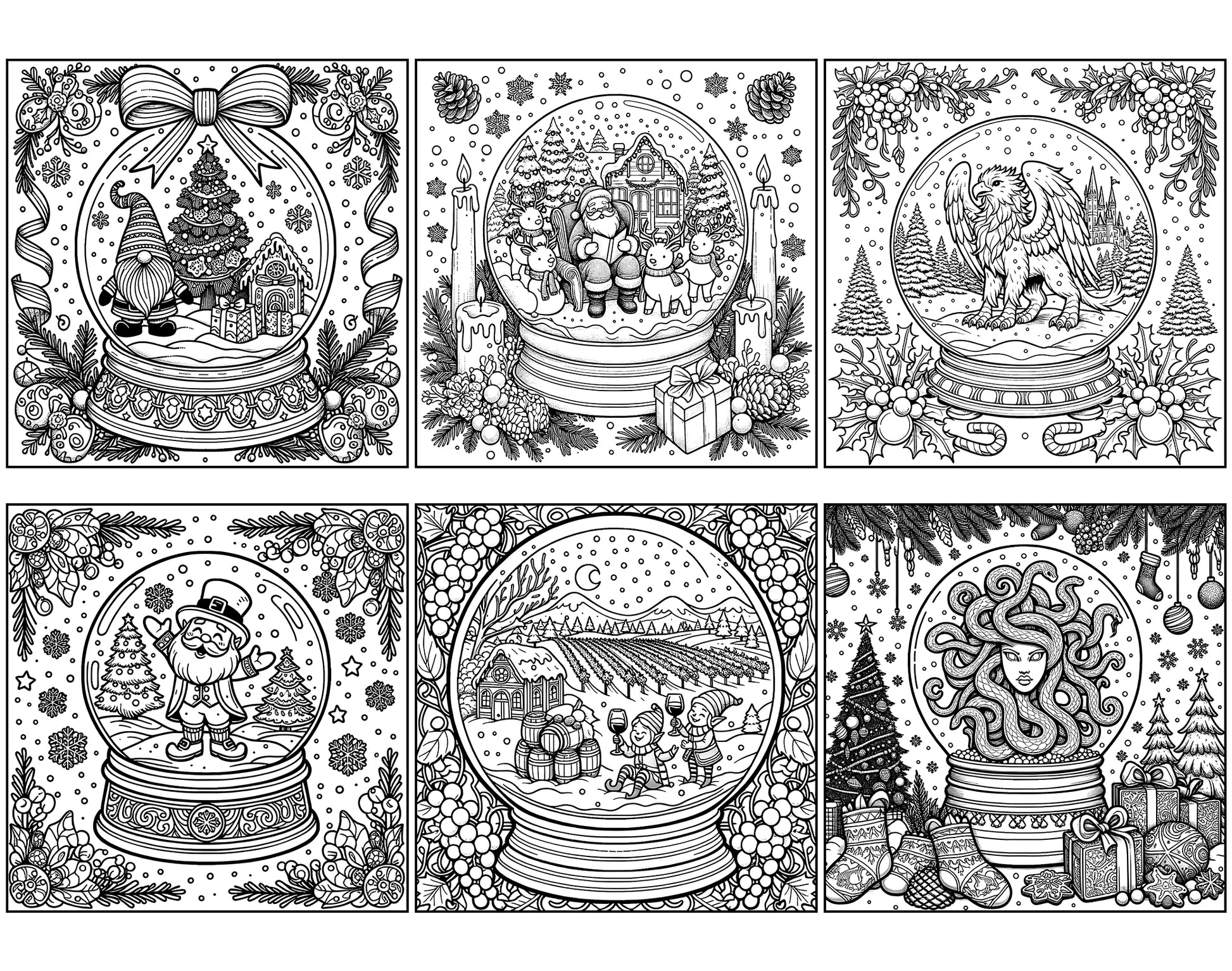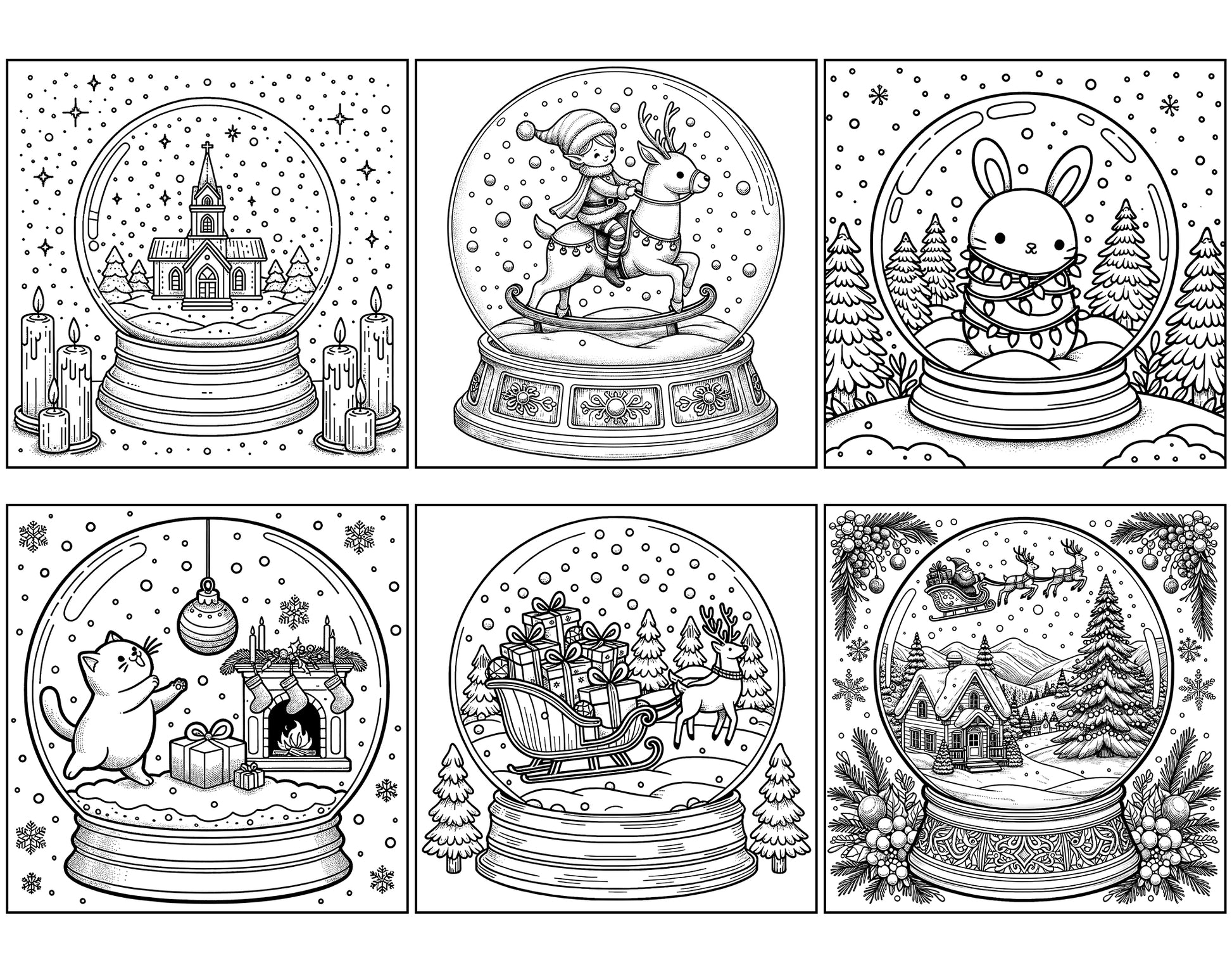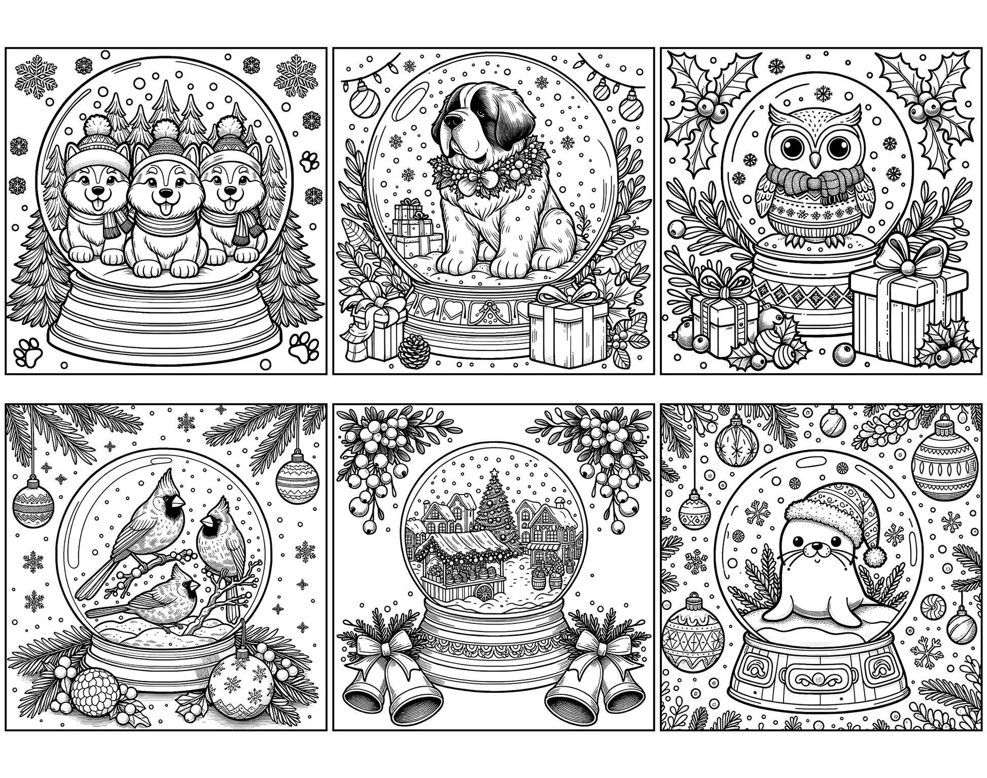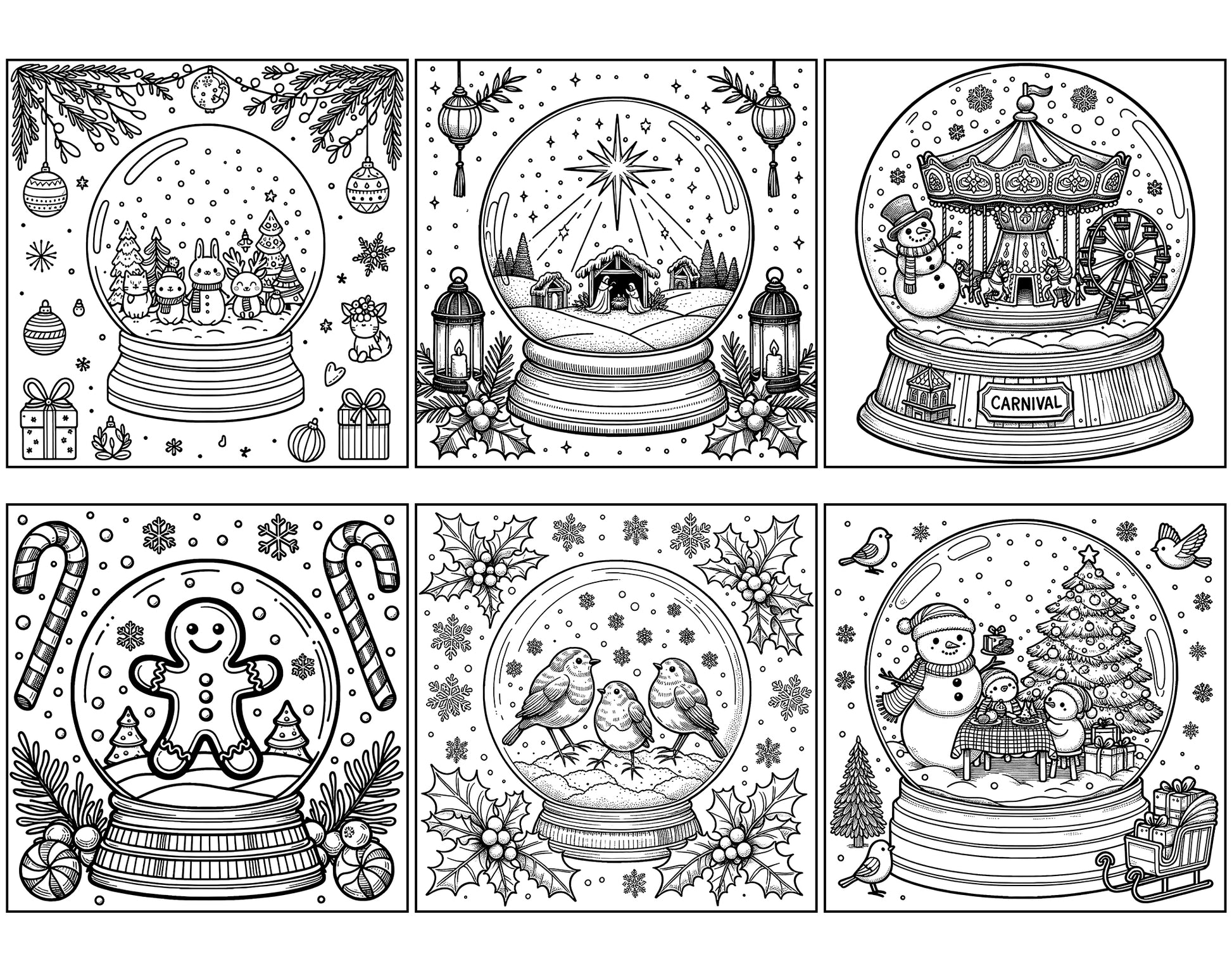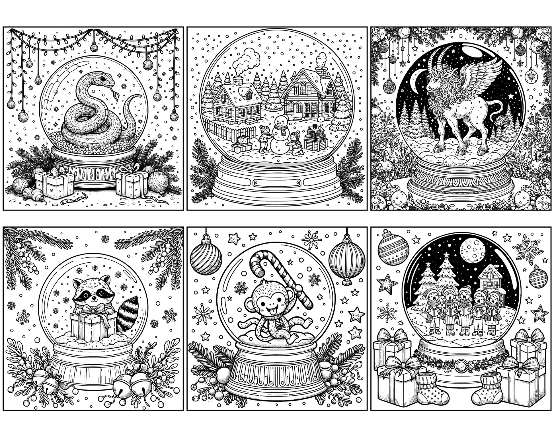 101 Snow Globe Christmas Coloring Pages - Instant Download - Printable